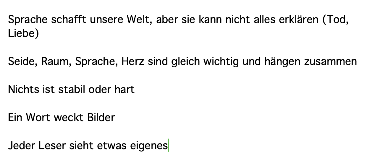 Die dänische Schriftstellerin Inger Christensen hat 2000 ihren Essayband „Hemmelighedstilstanden“ veröffentlicht, der im selben Jahr von Hanns Rössel ins Deutsche übertragen worden ist. Das fünfte Kapitel in „Der Geheimniszustand und das ‚Gedicht vom Tod'“ trägt den Titel „Die Seide, der Raum, die Sprache, das Herz“. Welche Thesen, Bilder und Wörter bleiben in unserer Erinnerung?