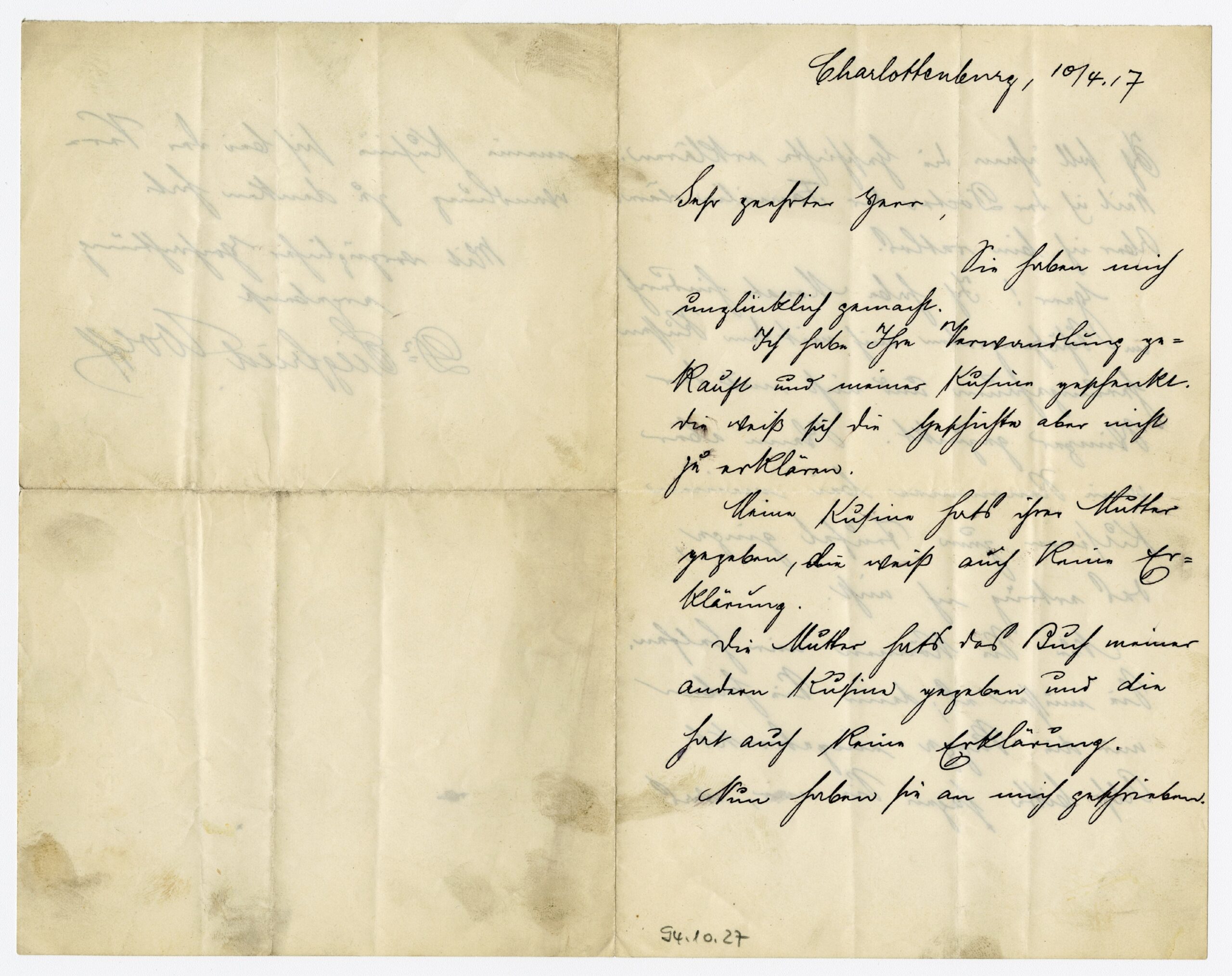 „[R]atlos“, ja „unglücklich“ macht Die Verwandlung den Berliner Bankdirektor Siegfried Wolff aus Berlin-Charlottenburg. Er könne seiner Kusine, der er Kafkas Verwandlung geschenkt habe, den Sinn des Textes nicht erklären. Auch die Mutter der Kusine und eine andere Kusine wüssten keinen Rat. Daher wendet sich Wolff am 10. April 1917 direkt an den Autor: „Herr! Ich habe Monate hindurch im Schützengraben mich mit den Russen herumgehauen und nicht mit der Wimper gezuckt. Wenn aber mein Renommee bei meinen Kusinen zum Teufel ginge, das ertrüg ich nicht. Nur Sie können mir helfen. Sie müssen es; denn Sie haben mir die Suppe eingebrockt. Also bitte sagen Sie mir, was meine Kusine sich bei der Verwandlung zu denken hat.“