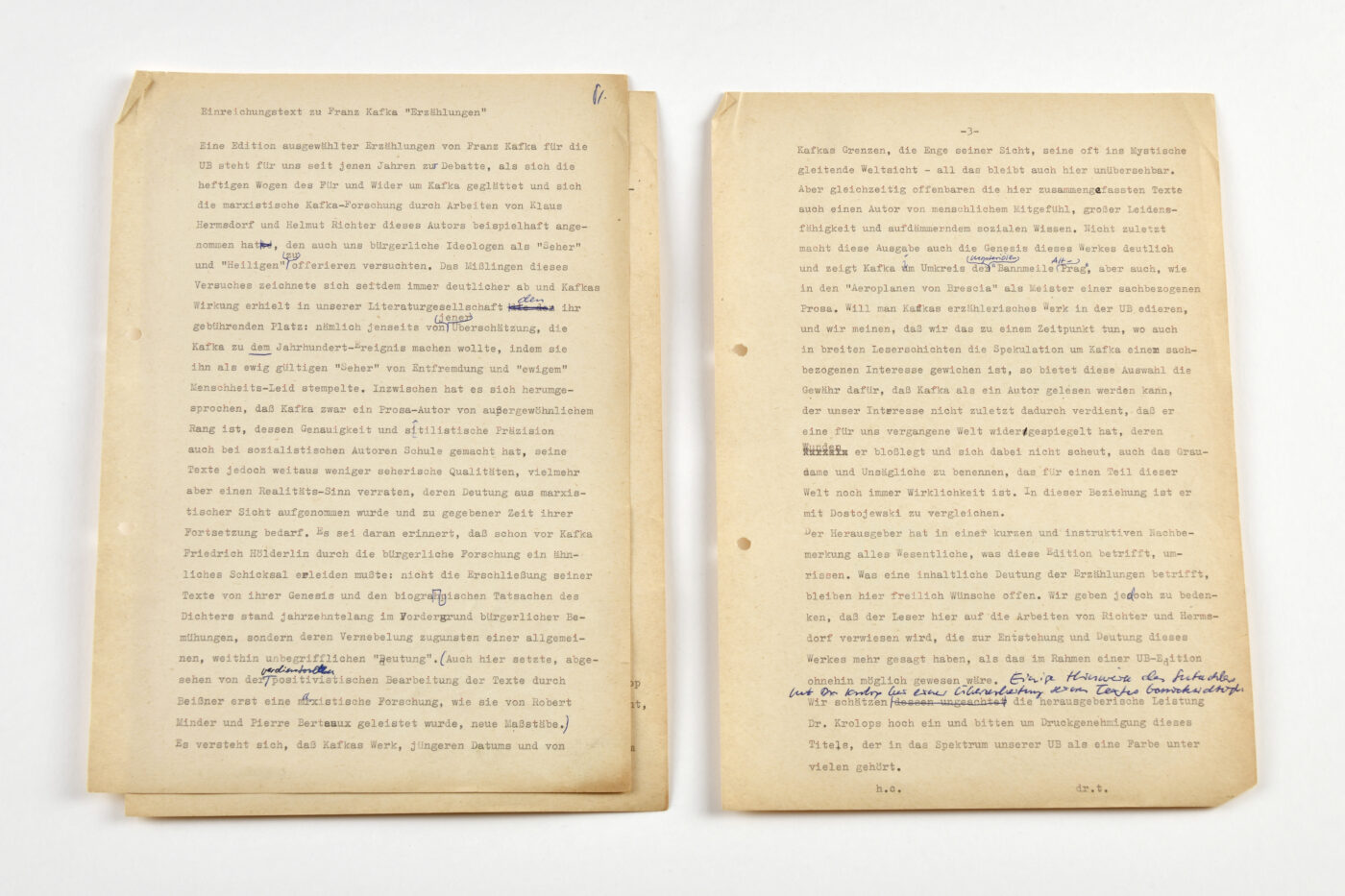 Der Reclam Verlag Leipzig begutachtet Erzählungen Kafkas