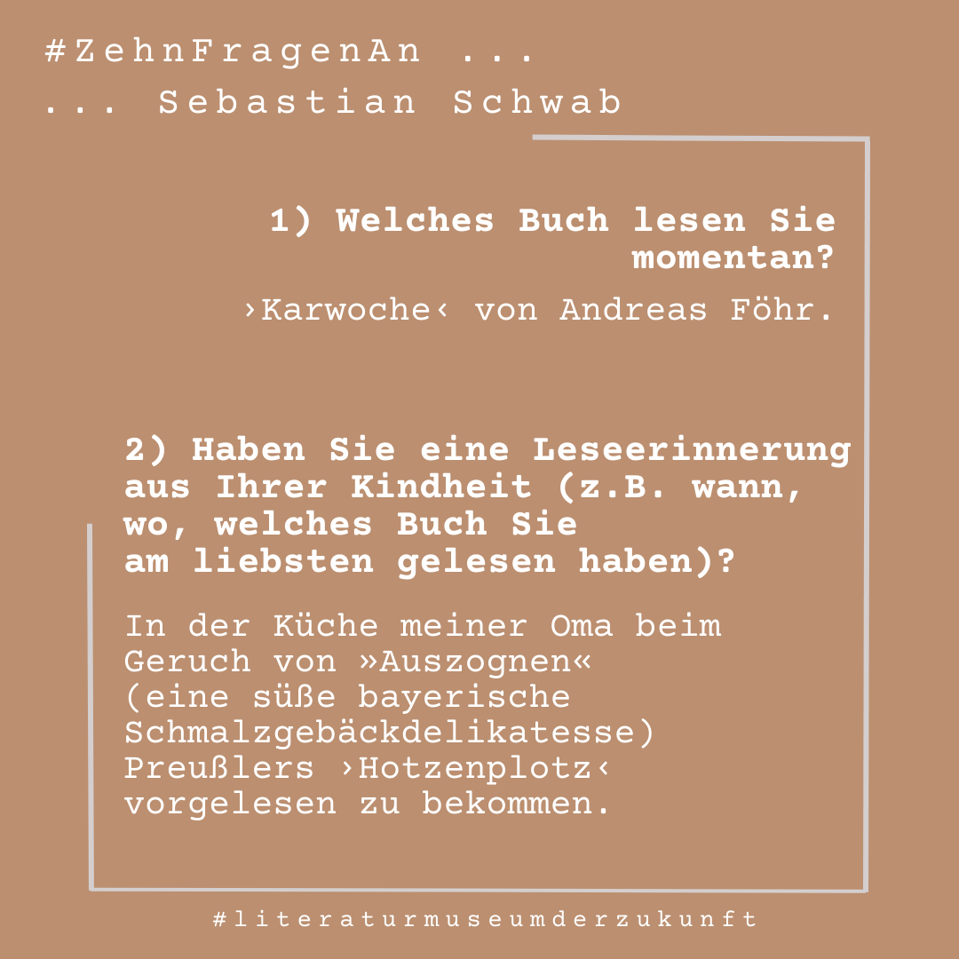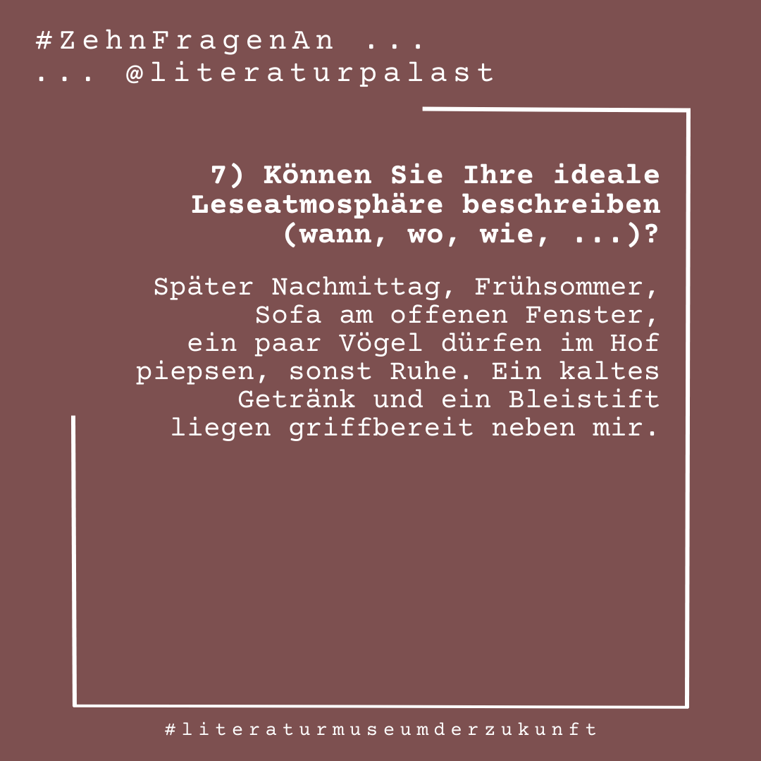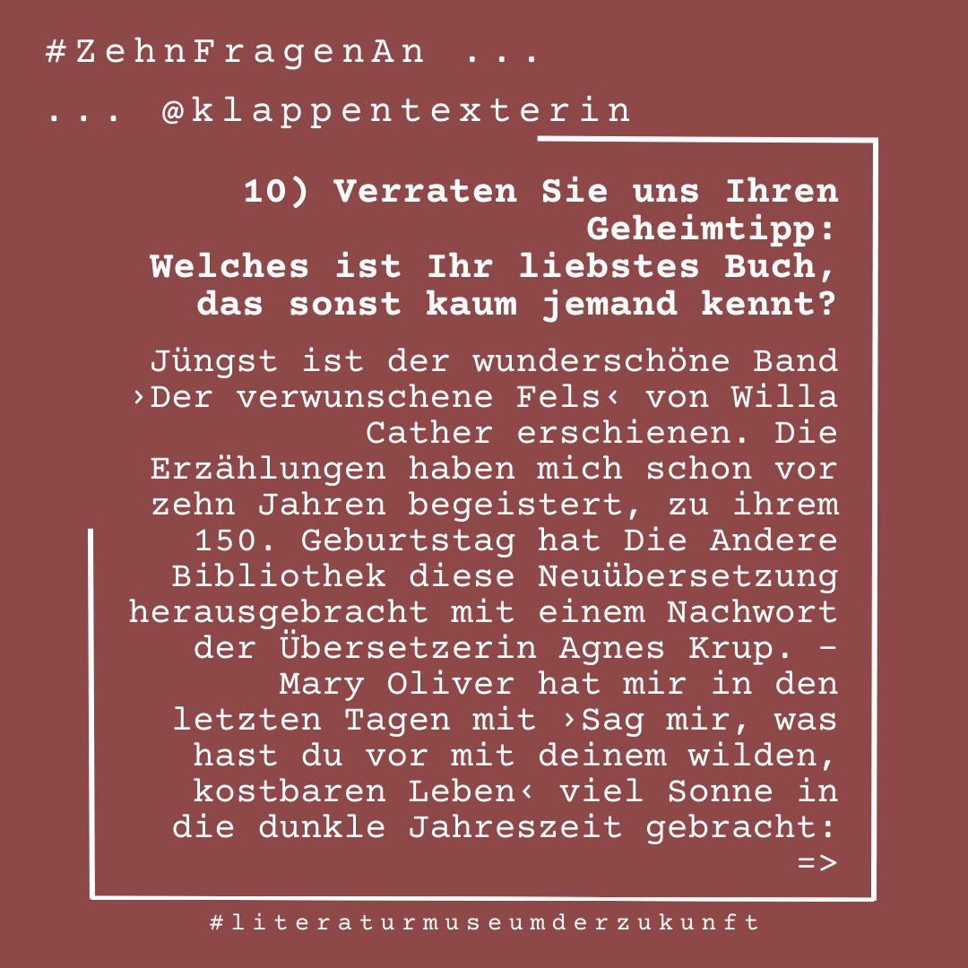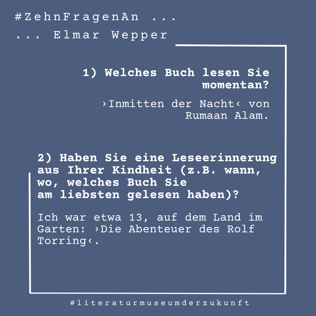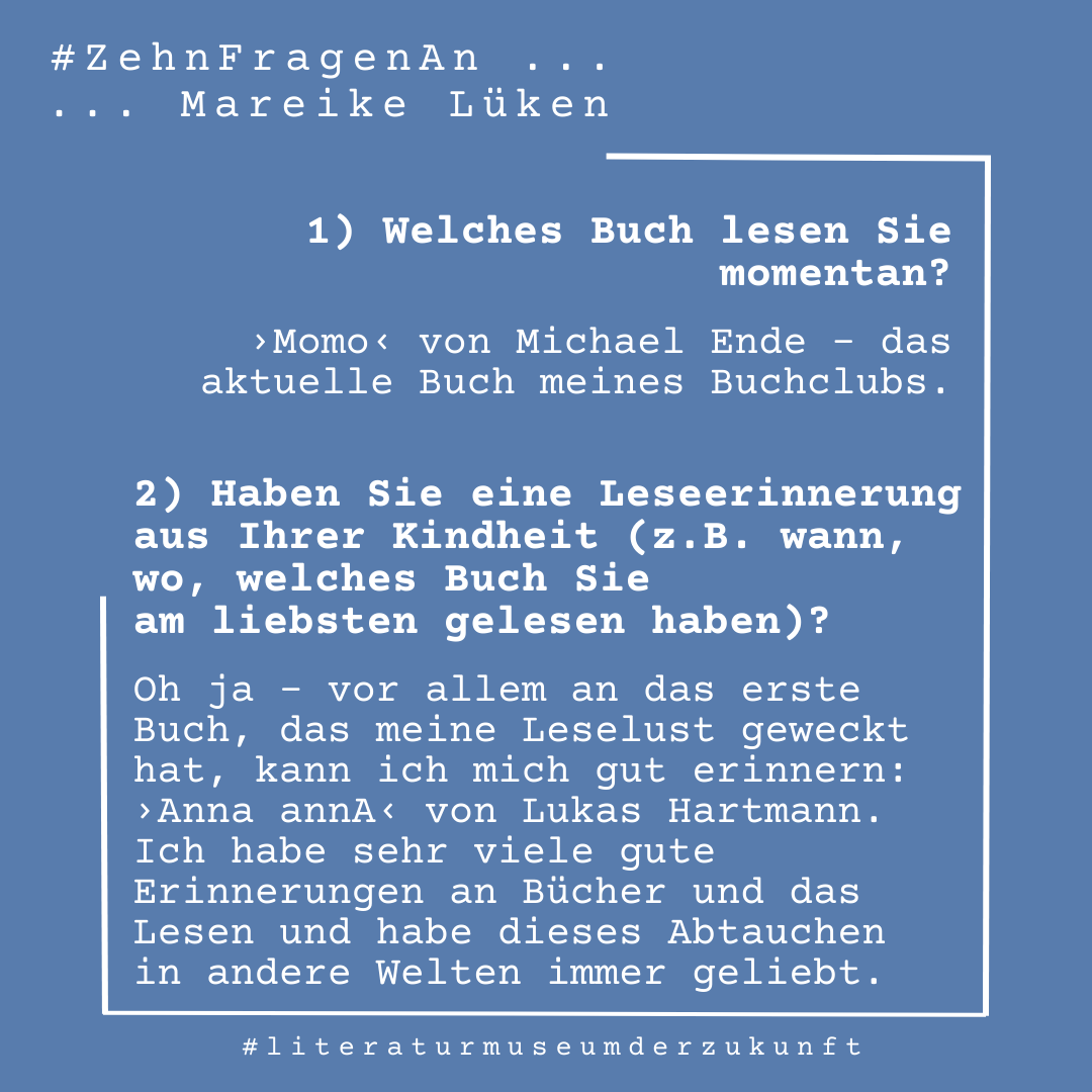 #zehnfragenan: Was ist Literatur und in welchen Formen, Formaten und Situationen ist sie für jede/n Einzelne/n persönlich wichtig? Wir reden mit interessanten Menschen über’s Lesen und Schreiben – und darüber, welche Rolle Literatur in unserem Leben einnimmt. Indem wir verschiedene Stimmen zu Wort kommen lassen, wollen wir uns gemeinsam der Antwort nähern, was Literatur heute und morgen für uns alle bedeuten kann.