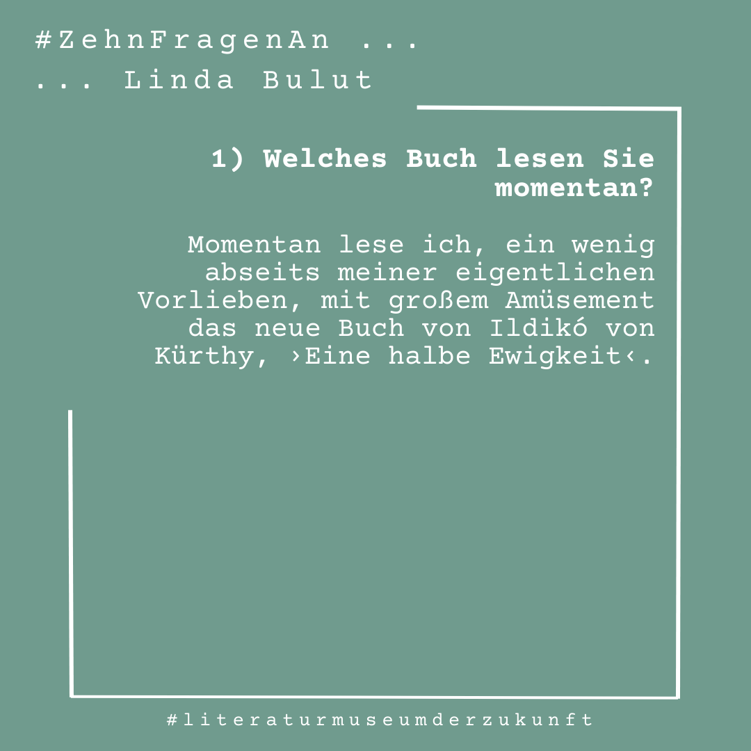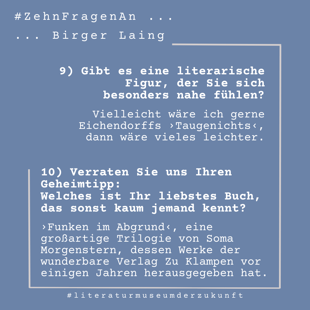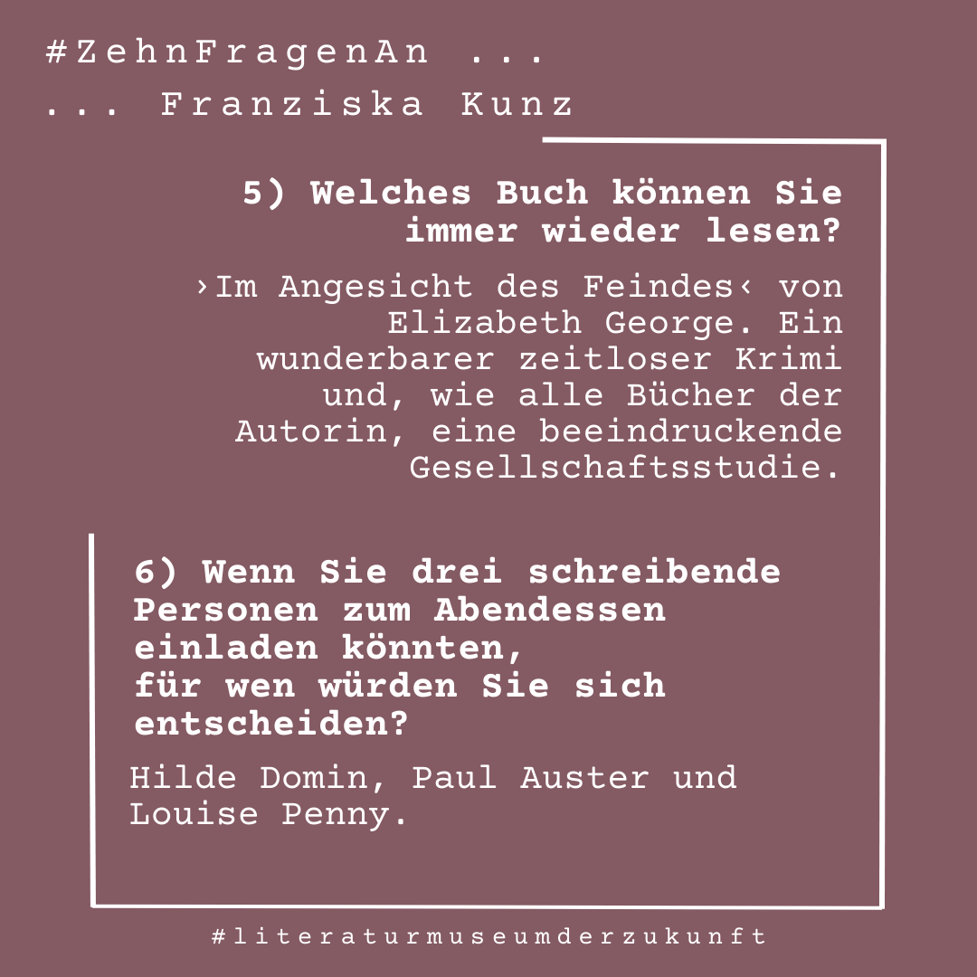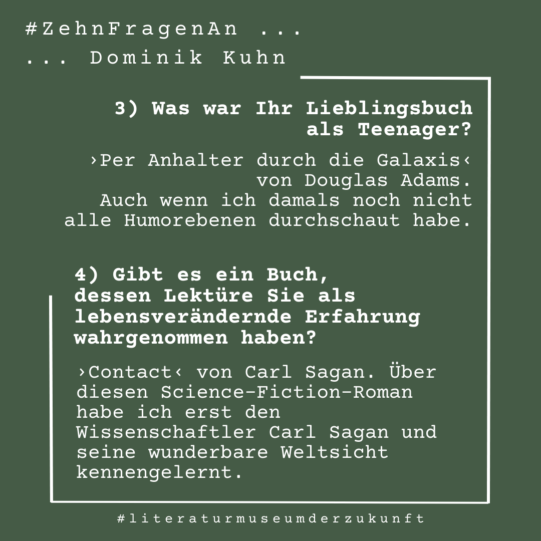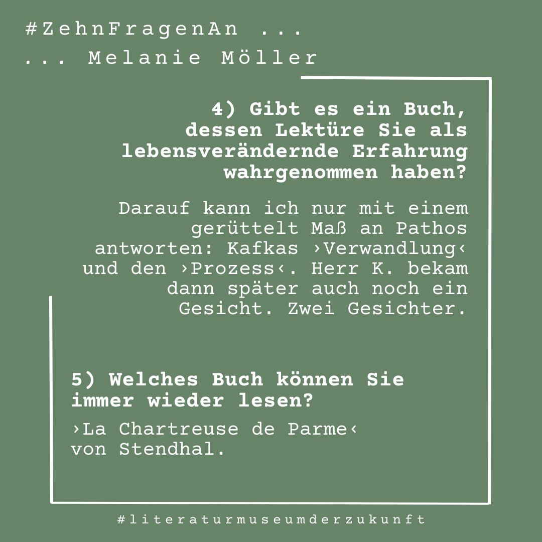 #zehnfragenan: Was ist Literatur und in welchen Formen, Formaten und Situationen ist sie für jede/n Einzelne/n persönlich wichtig? Wir reden mit interessanten Menschen über’s Lesen und Schreiben – und darüber, welche Rolle Literatur in unserem Leben einnimmt. Indem wir verschiedene Stimmen zu Wort kommen lassen, wollen wir uns gemeinsam der Antwort nähern, was Literatur heute und morgen für uns alle bedeuten kann.