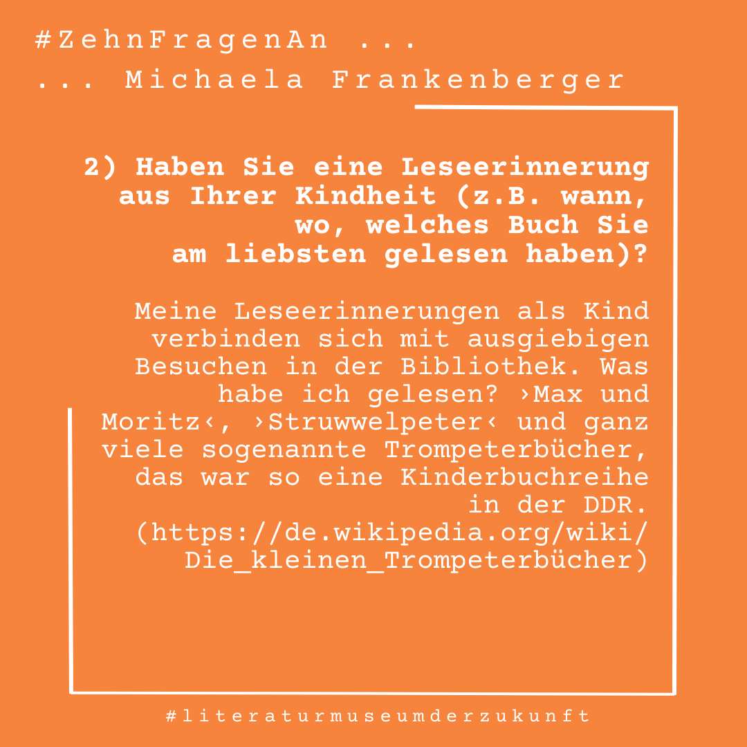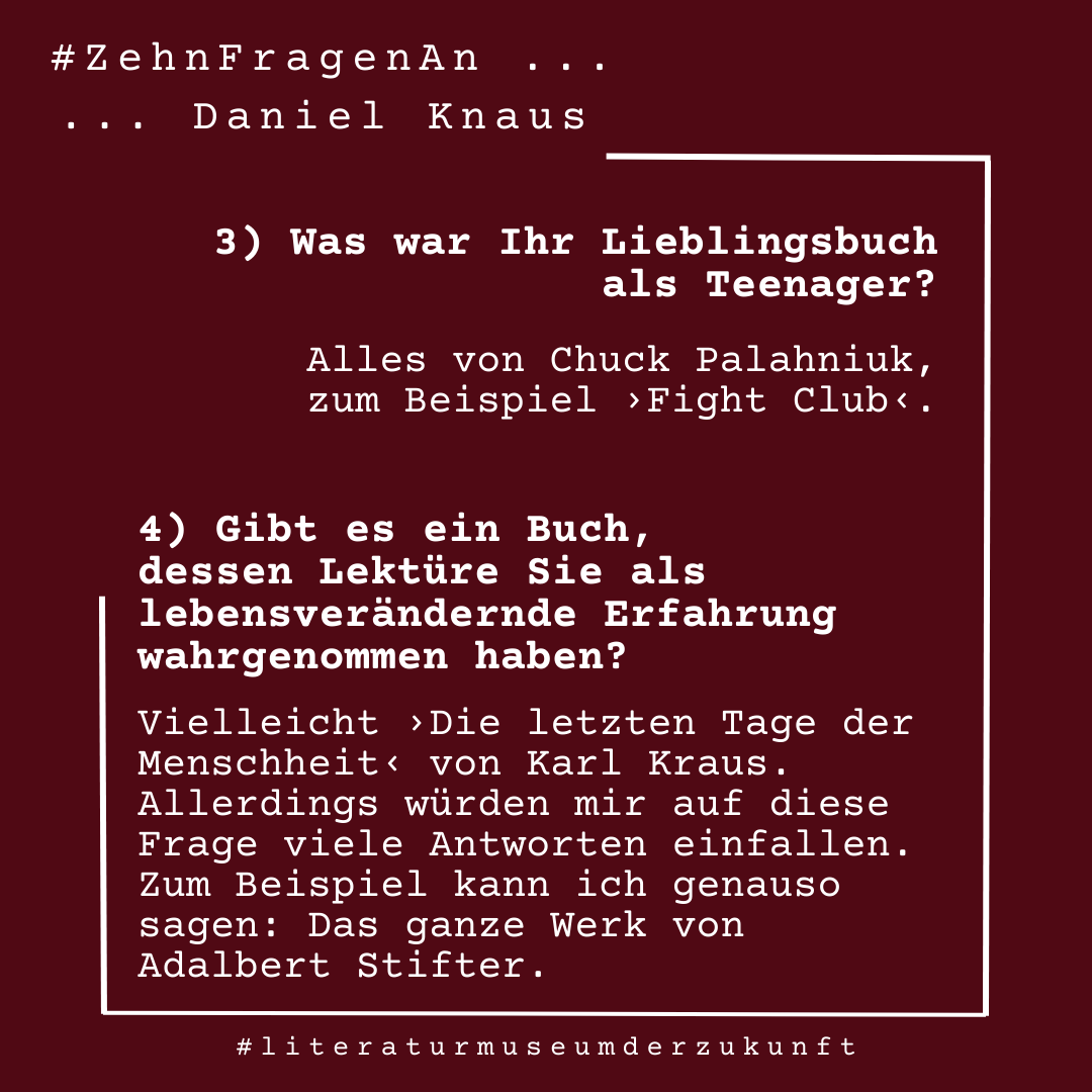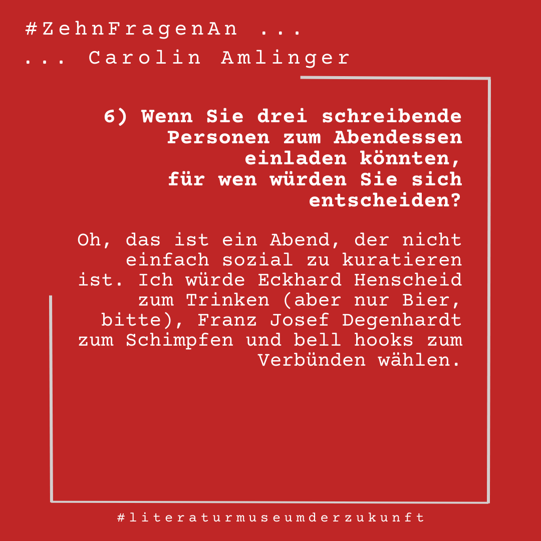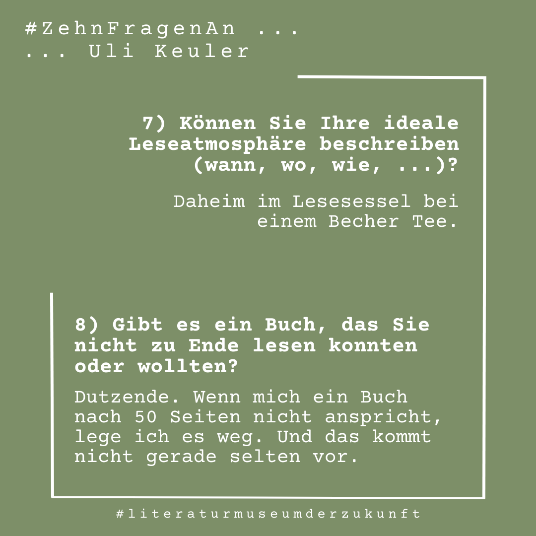 #zehnfragenan: Was ist Literatur und in welchen Formen, Formaten und Situationen ist sie für jede/n Einzelne/n persönlich wichtig? Wir reden mit interessanten Menschen über’s Lesen und Schreiben – und darüber, welche Rolle Literatur in unserem Leben einnimmt. Indem wir verschiedene Stimmen zu Wort kommen lassen, wollen wir uns gemeinsam der Antwort nähern, was Literatur heute und morgen für uns alle bedeuten kann.