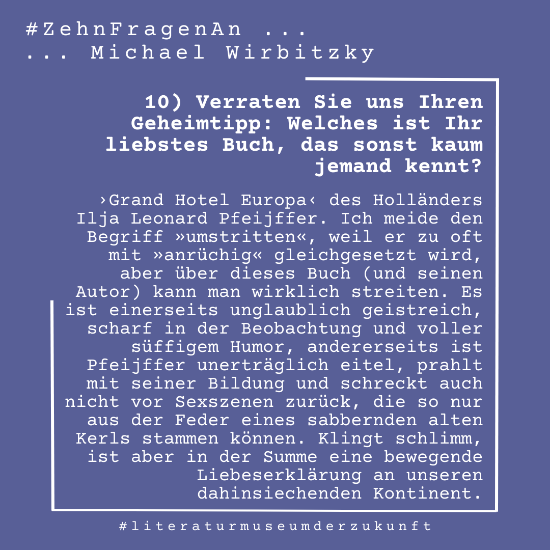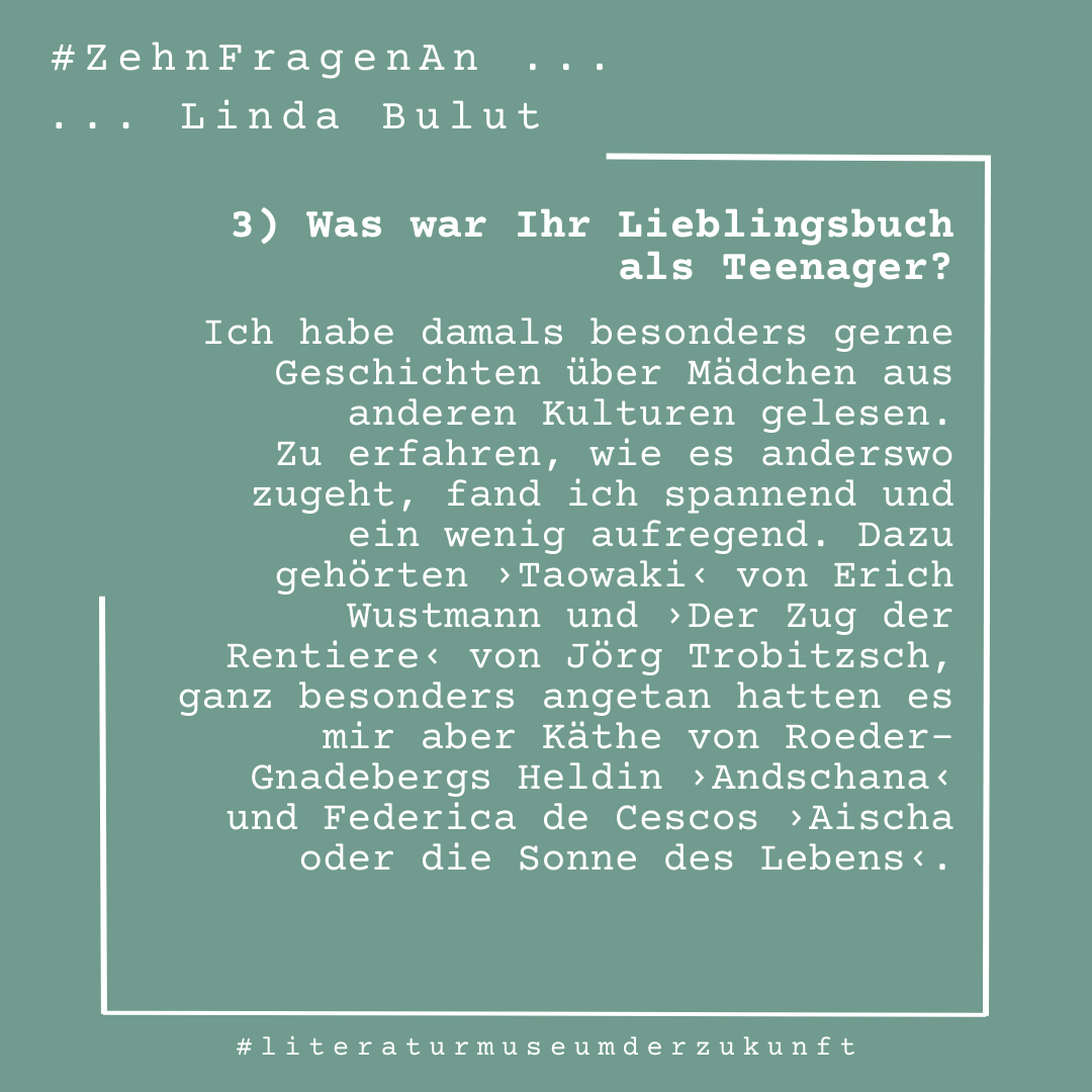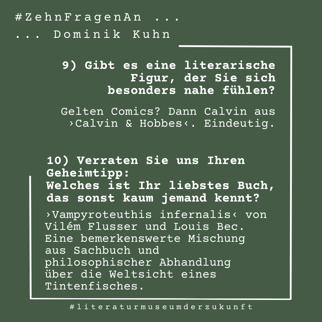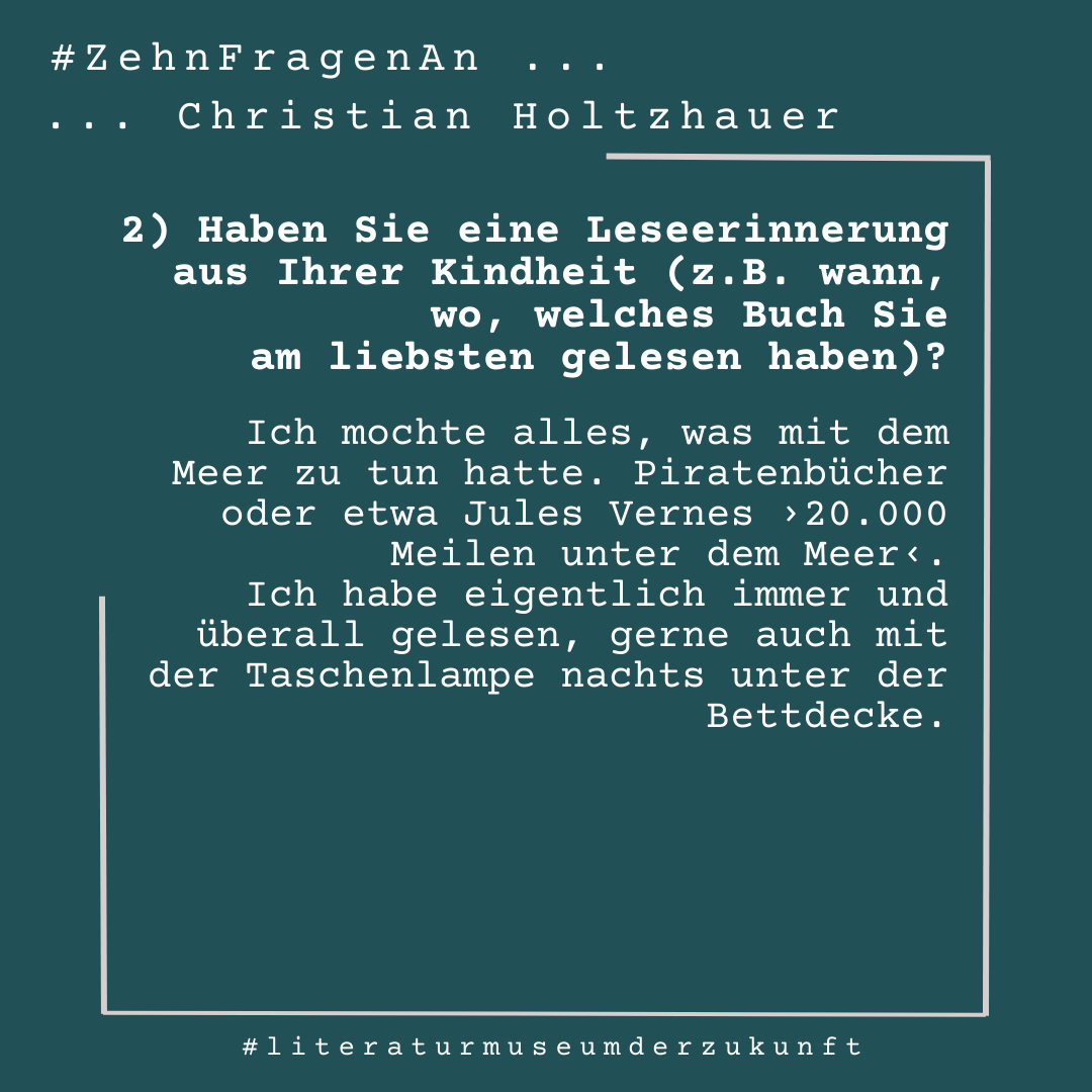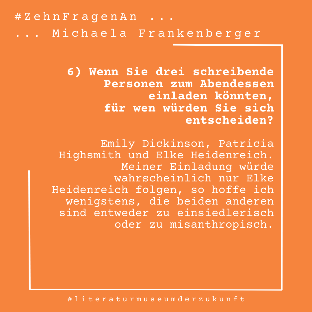 #zehnfragenan: Was ist Literatur und in welchen Formen, Formaten und Situationen ist sie für jede/n Einzelne/n persönlich wichtig? Wir reden mit interessanten Menschen über’s Lesen und Schreiben – und darüber, welche Rolle Literatur in unserem Leben einnimmt. Indem wir verschiedene Stimmen zu Wort kommen lassen, wollen wir uns gemeinsam der Antwort nähern, was Literatur heute und morgen für uns alle bedeuten kann.