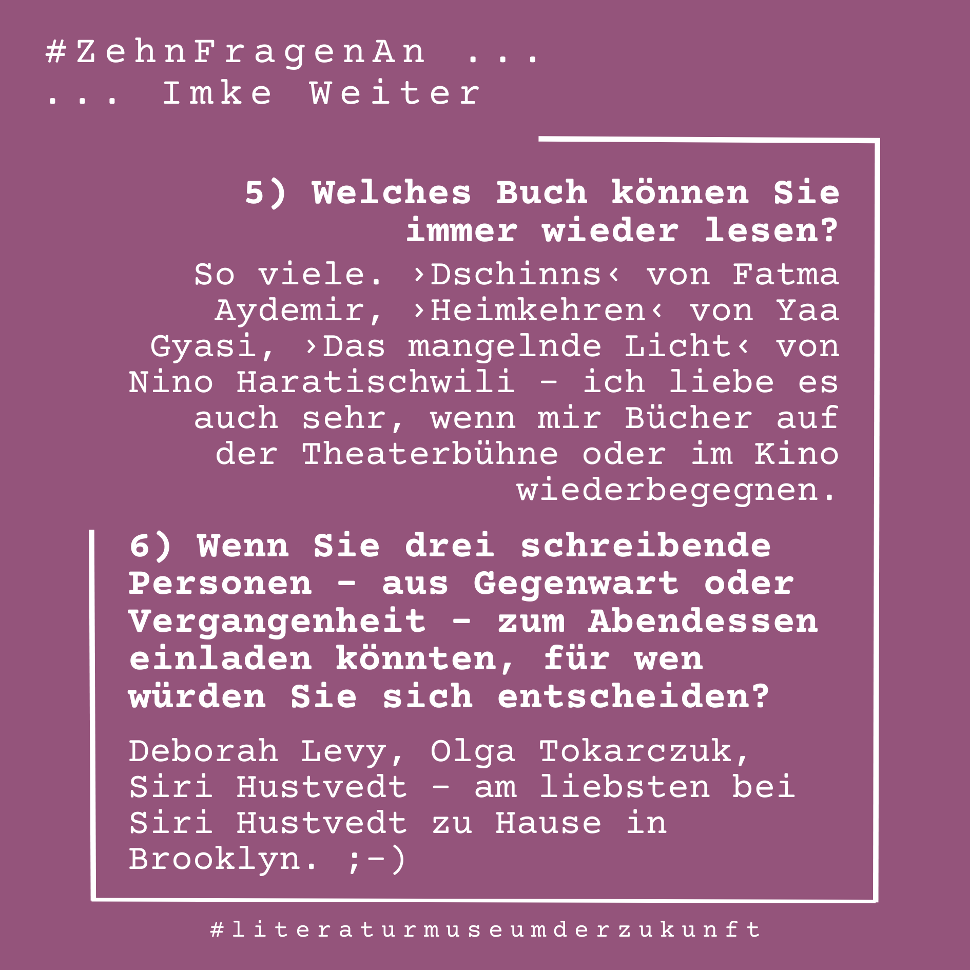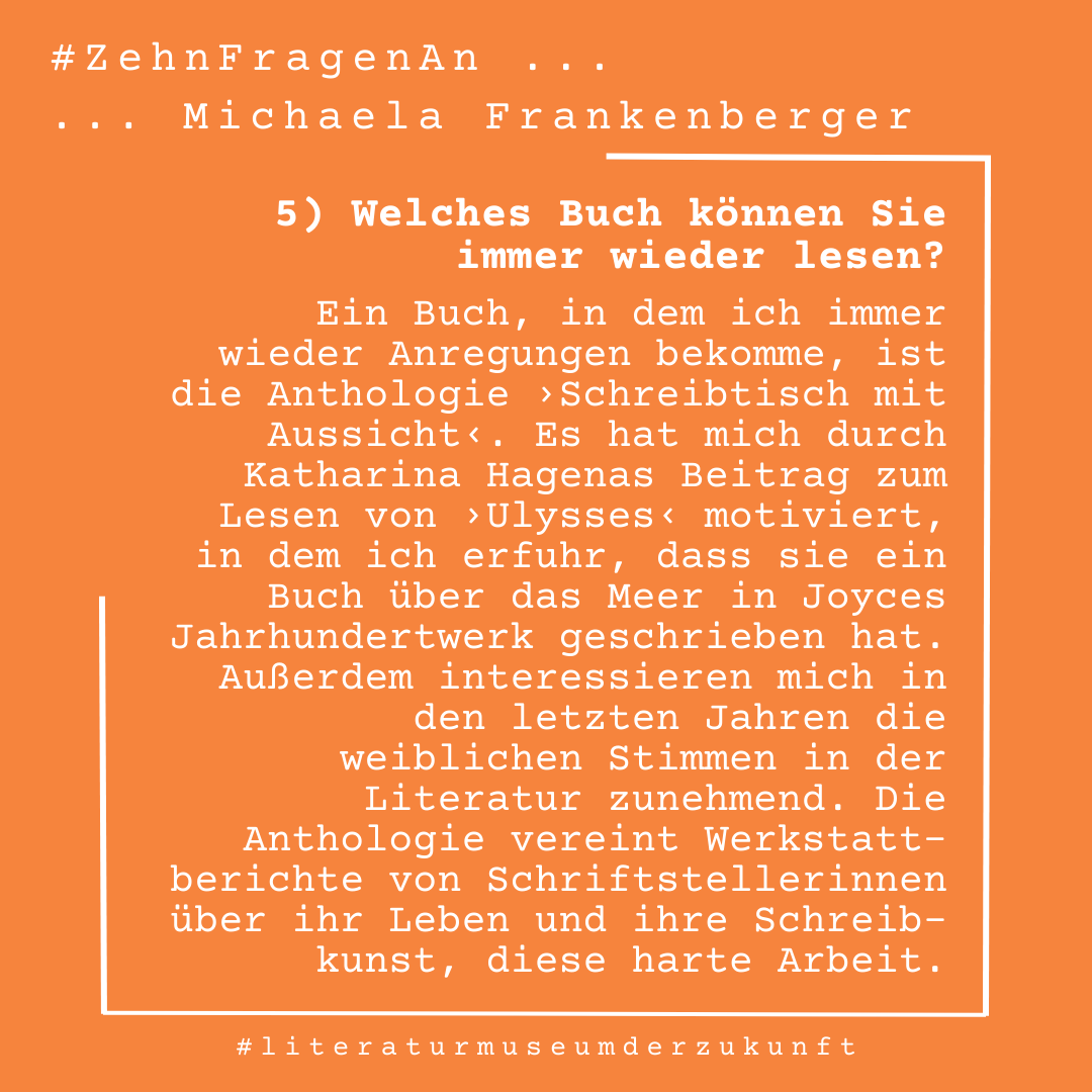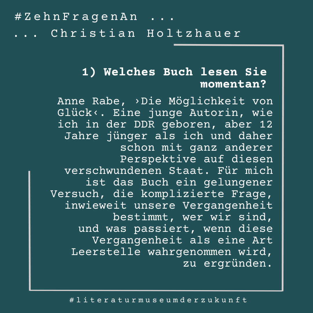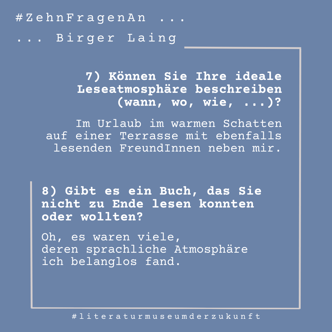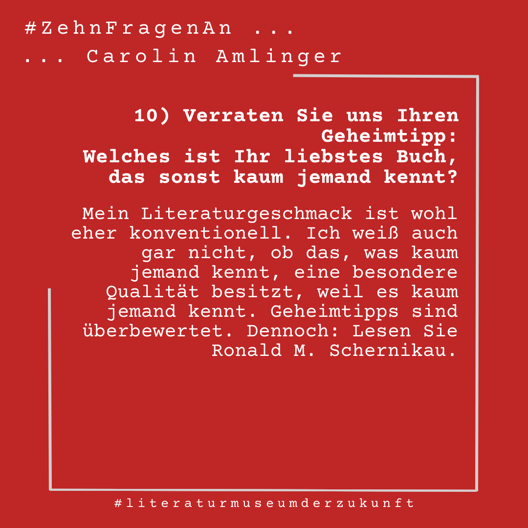 #zehnfragenan: Was ist Literatur und in welchen Formen, Formaten und Situationen ist sie für jede/n Einzelne/n persönlich wichtig? Wir reden mit interessanten Menschen über’s Lesen und Schreiben – und darüber, welche Rolle Literatur in unserem Leben einnimmt. Indem wir verschiedene Stimmen zu Wort kommen lassen, wollen wir uns gemeinsam der Antwort nähern, was Literatur heute und morgen für uns alle bedeuten kann.