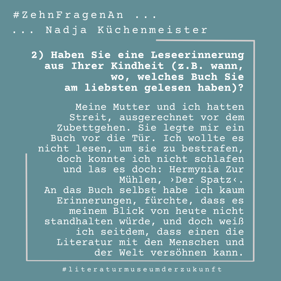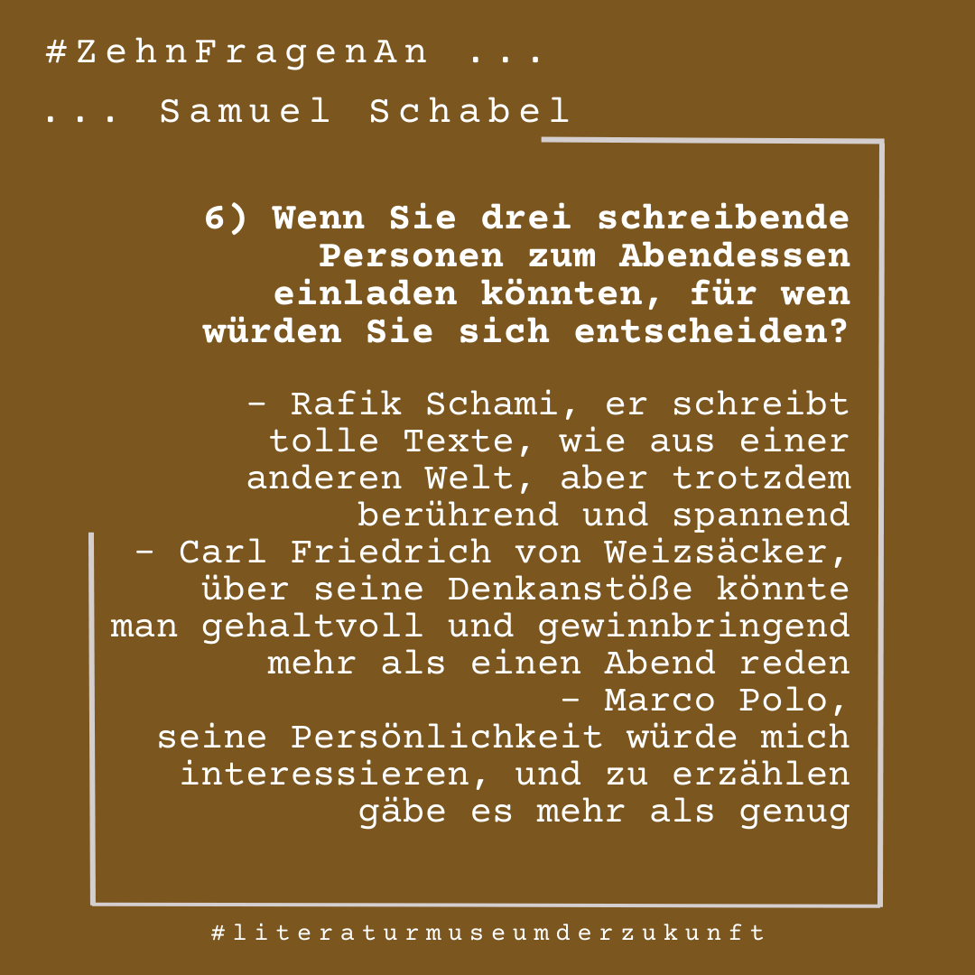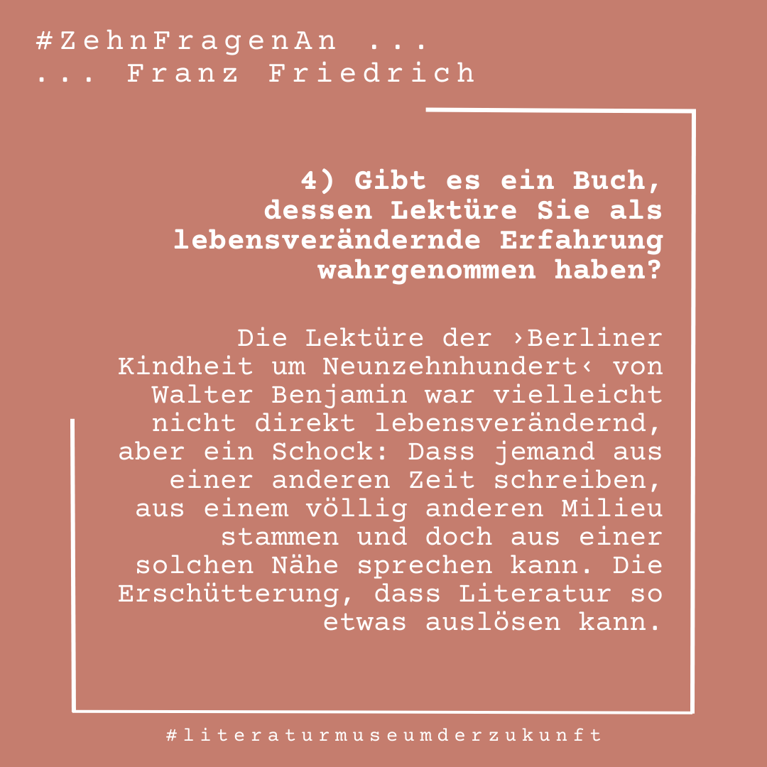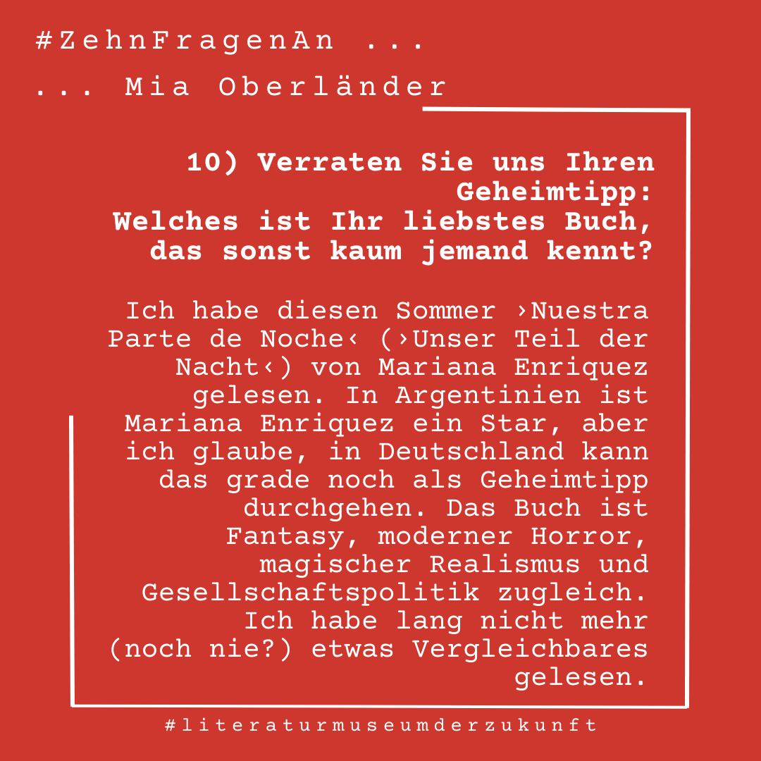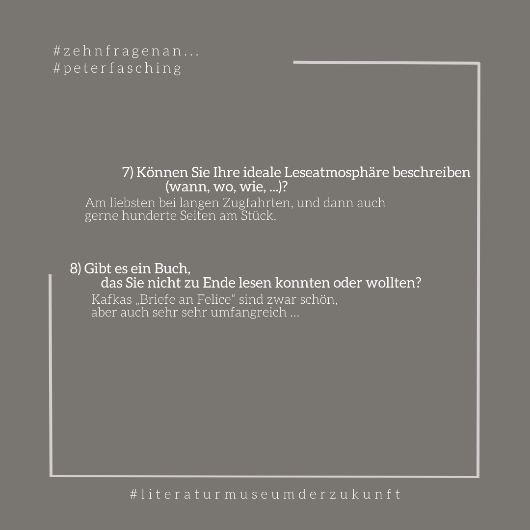 #zehnfragenan: Was ist Literatur und in welchen Formen, Formaten und Situationen ist sie für jede/n Einzelne/n persönlich wichtig? Wir reden mit interessanten Menschen über’s Lesen und Schreiben – und darüber, welche Rolle Literatur in unserem Leben einnimmt. Indem wir verschiedene Stimmen zu Wort kommen lassen, wollen wir uns gemeinsam der Antwort nähern, was Literatur heute und morgen für uns alle bedeuten kann.