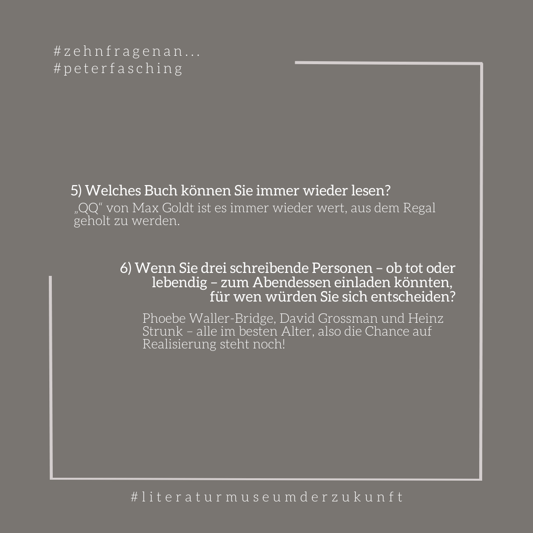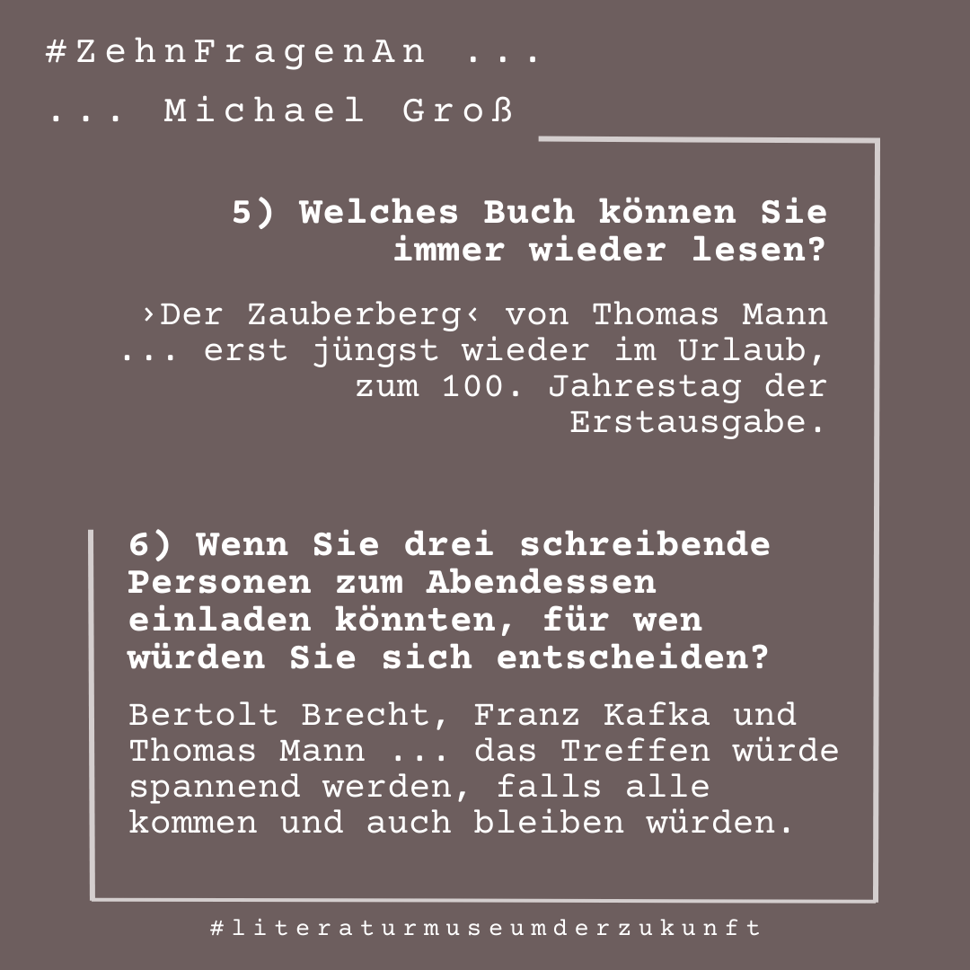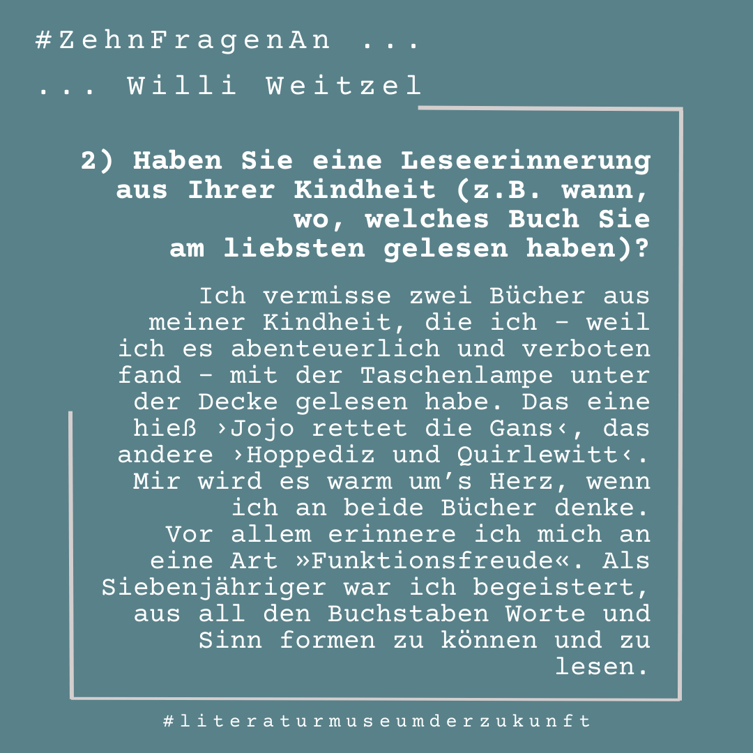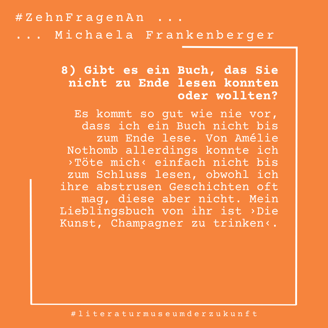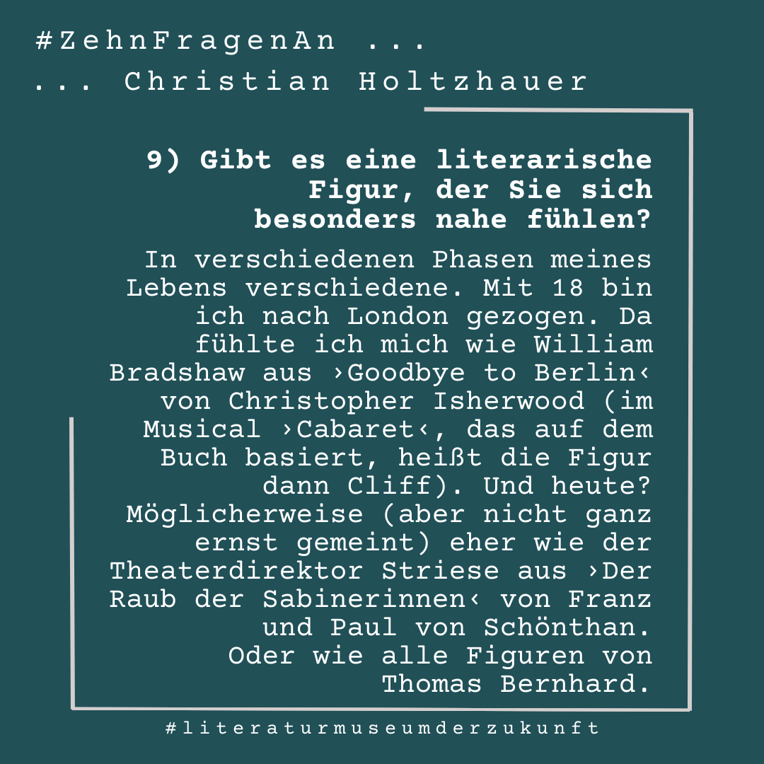#zehnfragenan: Was ist Literatur und in welchen Formen, Formaten und Situationen ist sie für jede/n Einzelne/n persönlich wichtig? Wir reden mit interessanten Menschen über’s Lesen und Schreiben – und darüber, welche Rolle Literatur in unserem Leben einnimmt. Indem wir verschiedene Stimmen zu Wort kommen lassen, wollen wir uns gemeinsam der Antwort nähern, was Literatur heute und morgen für uns alle bedeuten kann.