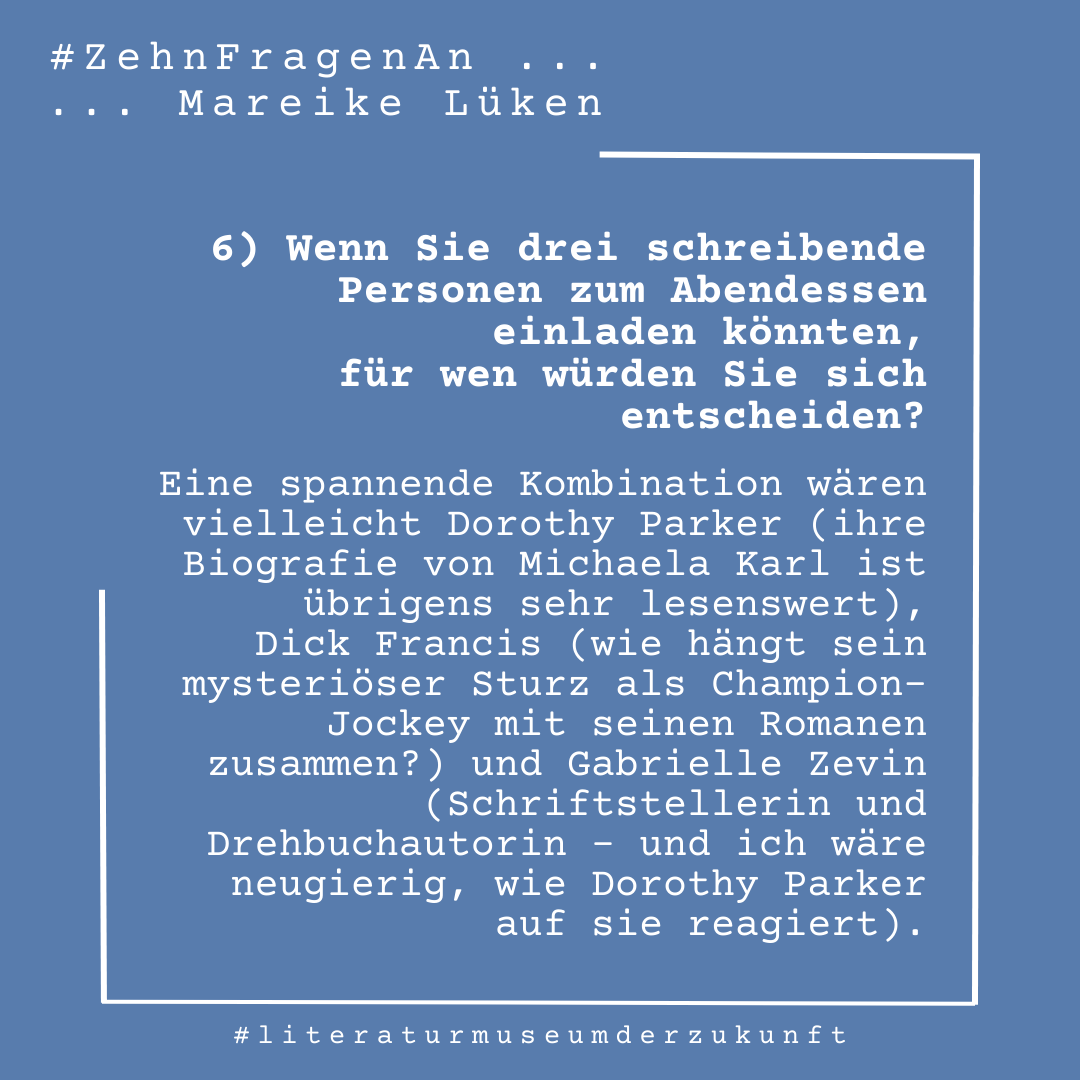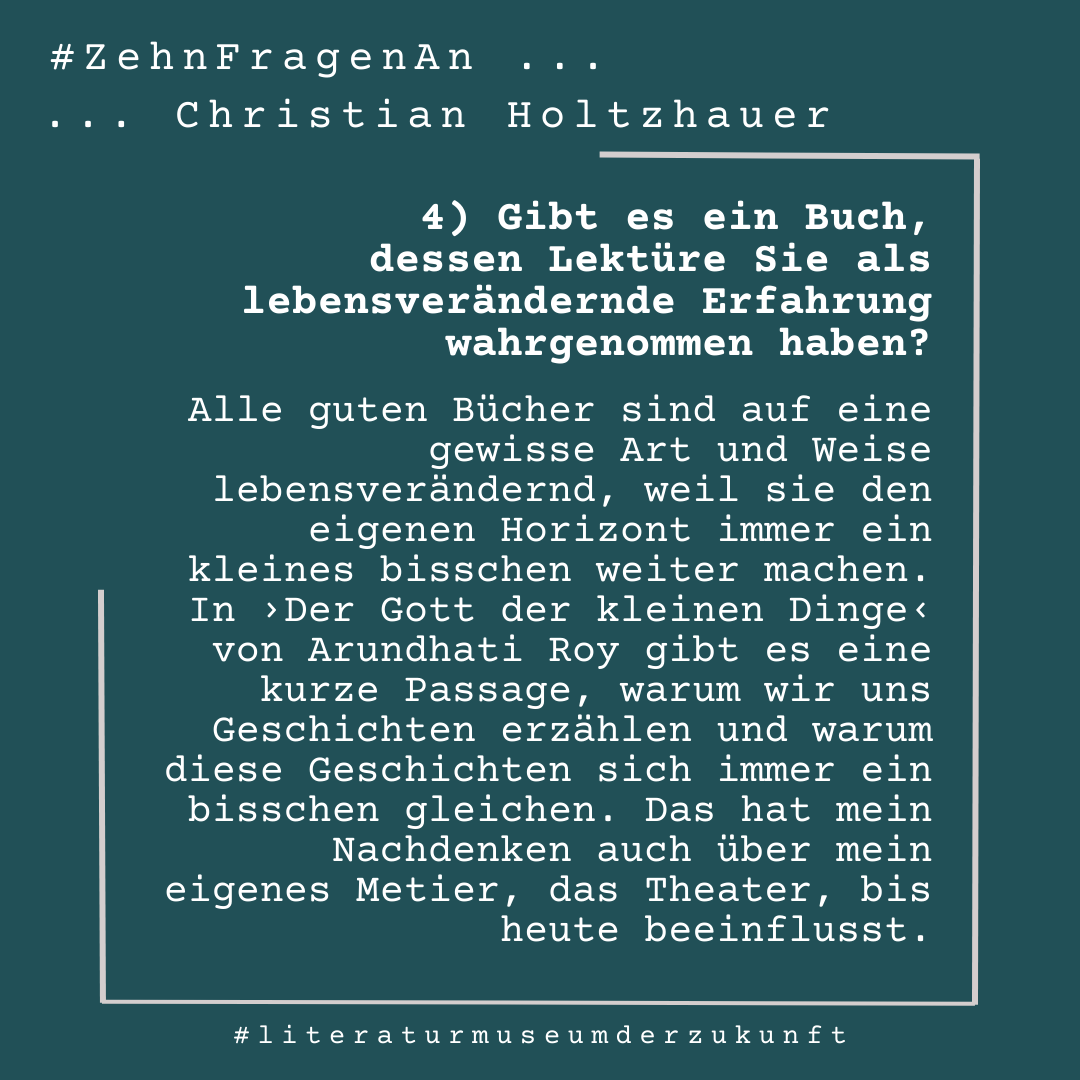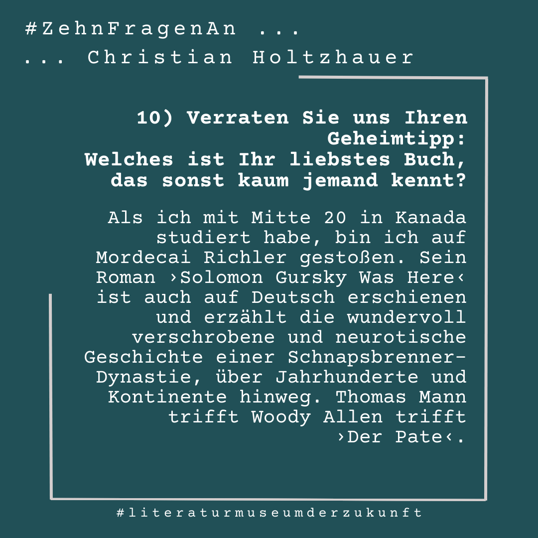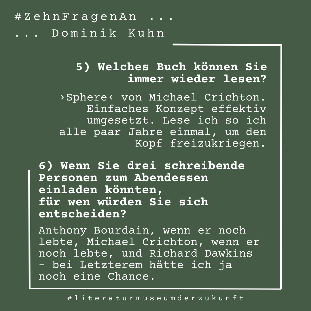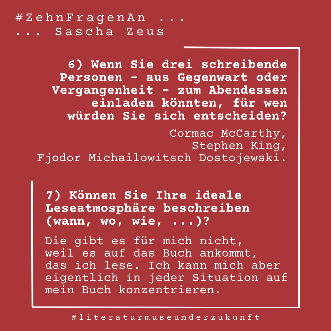 #zehnfragenan: Was ist Literatur und in welchen Formen, Formaten und Situationen ist sie für jede/n Einzelne/n persönlich wichtig? Wir reden mit interessanten Menschen über’s Lesen und Schreiben – und darüber, welche Rolle Literatur in unserem Leben einnimmt. Indem wir verschiedene Stimmen zu Wort kommen lassen, wollen wir uns gemeinsam der Antwort nähern, was Literatur heute und morgen für uns alle bedeuten kann.