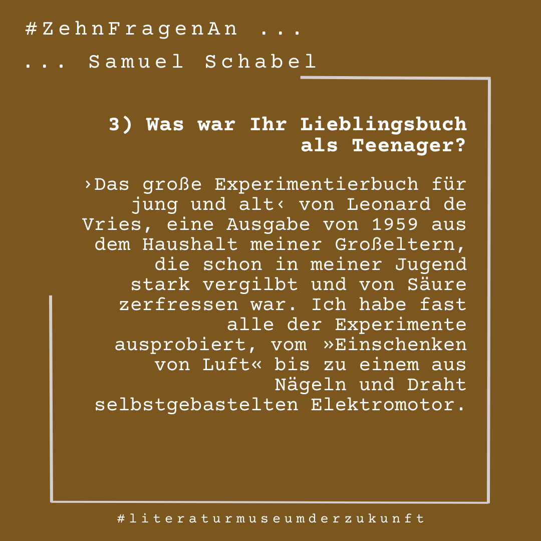 Samuel Schabel beschäftigt sich als Professor für Papiertechnik an der Technischen Universität Darmstadt damit, was Papier alles kann. Er interessiert sich aber nicht nur dafür, wie man Papier wasserfest macht oder es recycelt, sondern auch dafür, dass man darauf schreiben kann. Haben Sie ein Lieblingsbuch, Herr Schabel? [SamuelSchabel]