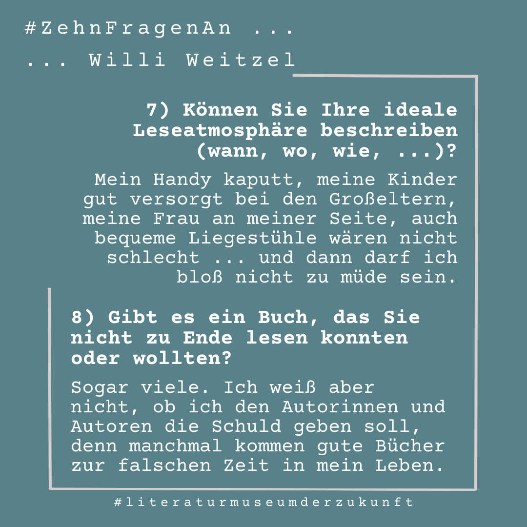 Willi will’s wissen – seit vielen Jahre macht er als Moderator und ‚Welterforscher‘ Kindern (und Erwachsenen) die Welt, ihre Rätsel, Probleme und Phänomene ein Stück verständlicher. Hat jemand, der so viel in der Welt unterwegs ist, eigentlich selbst Zeit zum Lesen, Herr Weitzel? Und wo gelingt das am besten? [WilliWeitzel]