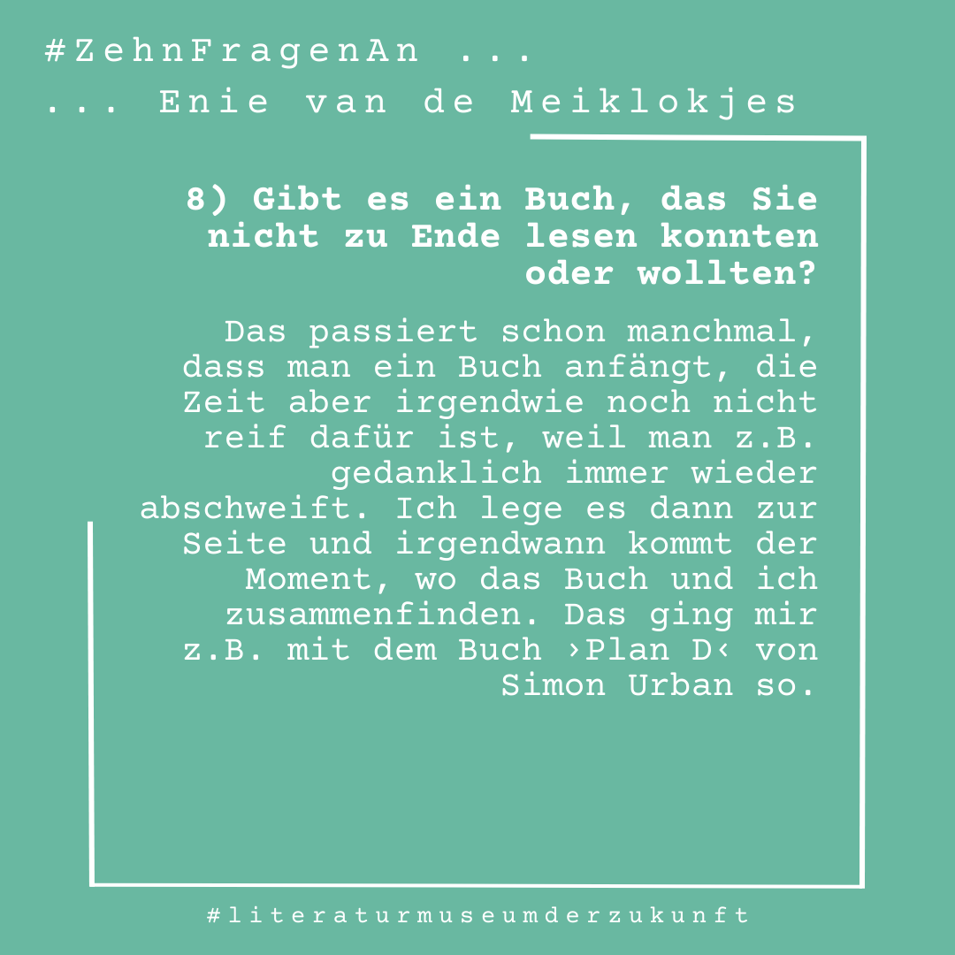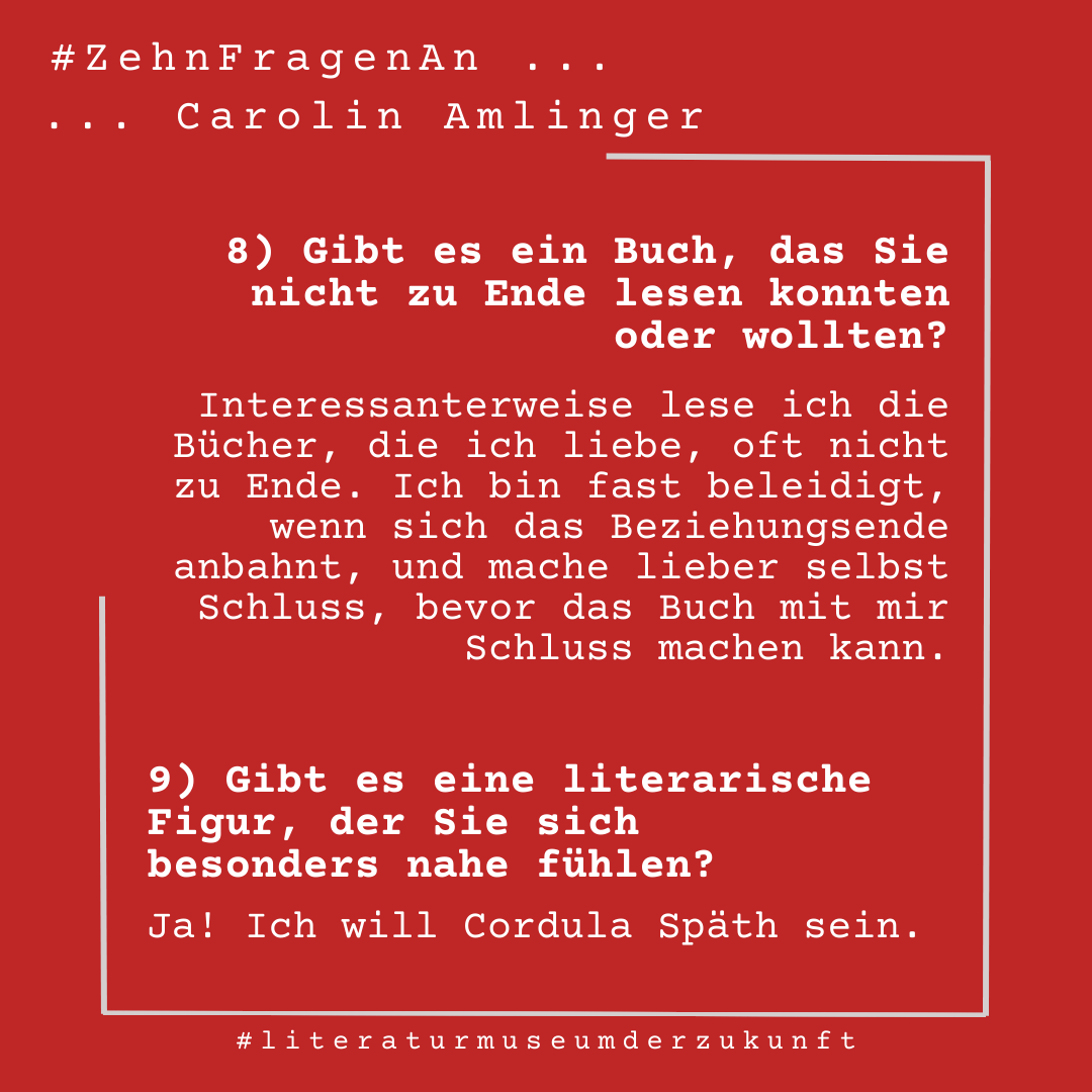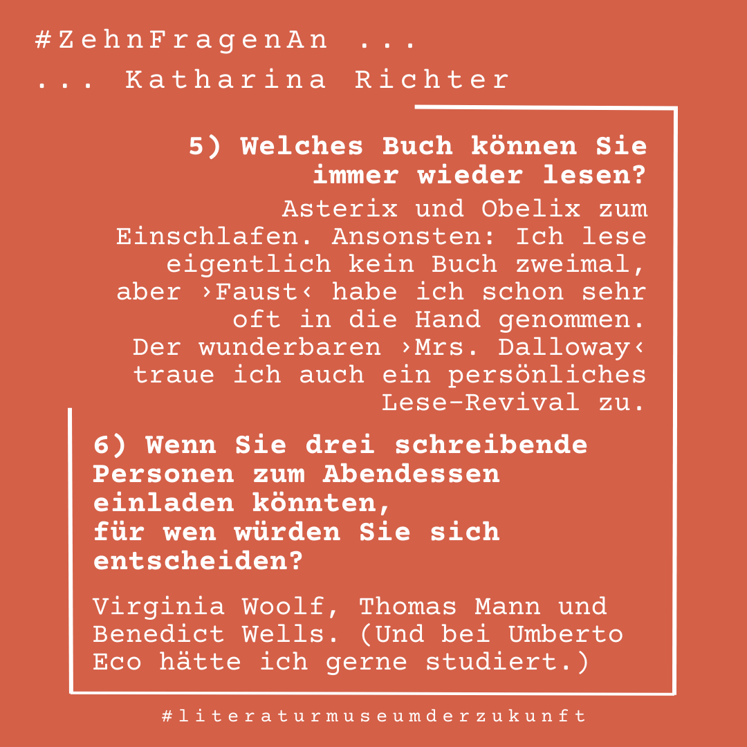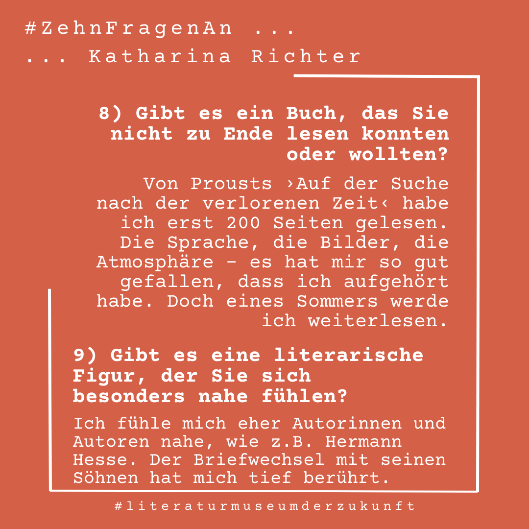 Bekannt aus „Wer wird Millionär?“: Unsere Kollegin Katharina Richter (https://www.dla-marbach.de/ueber-uns/mitarbeiterinnen-und-mitarbeiter/arbeitsstelle-f-literarische-museen-archive-u-gedenkstaetten-in-bawue/), die mit ihrem Gewinn ein Literaturcafé auf der Insel Föhr eröffnen möchte. Noch ist sie aber hier am DLA und beantwortet unsere Fragen. Welches Buch hat Ihnen so gut gefallen, dass Sie (vorerst) damit aufgehört haben, Frau Richter? [KatharinaRichter]