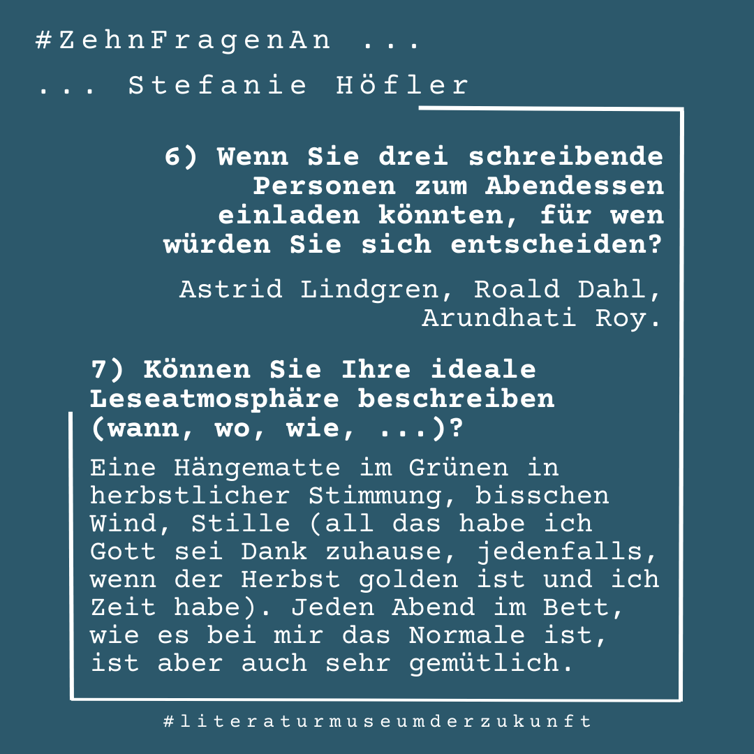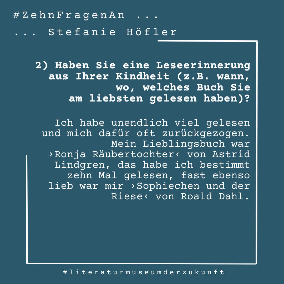 In ihren Romanen geht es um Freundschaft, Mobbing, Trauer und Familiengeheimnisse, um schöne, aber auch schwierige Erfahrungen, die jede:r erlebt: Stefanie Höfler ist Kinder- und Jugendbuchautorin, die mit ihren Geschichten Mut macht, den eigenen Weg zu finden. Was haben Sie als Kind selbst als liebstes gelesen, Frau Höfler? [StefanieHöfler]