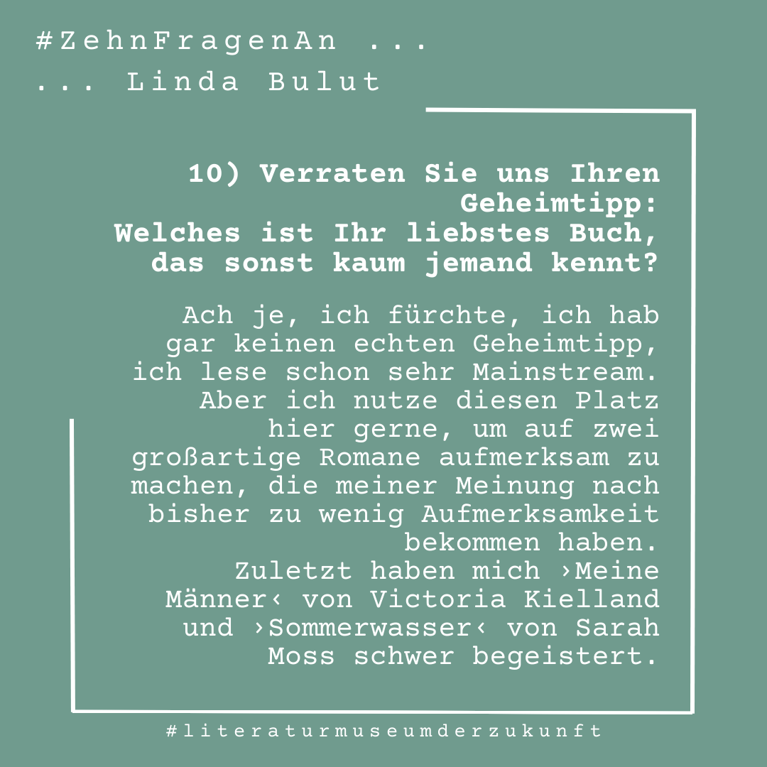 Bookstagram — das Buch nur als Deko-Objekt für fancy Fotos auf Instagram? Nicht bei Linda Bulut, die aus ihrem Lesetagebuch einen Blog gemacht hat: Sie liest, rezensiert und empfiehlt Bücher auf ihrem Kanal @readiculous.me. Warum brechen Sie auch manchmal eine Lektüre ab, Frau Bulut? Und welche Person aus der Bookstagram-Community nominieren Sie für die nächsten #zehnfragenan? [LindaBulut]
