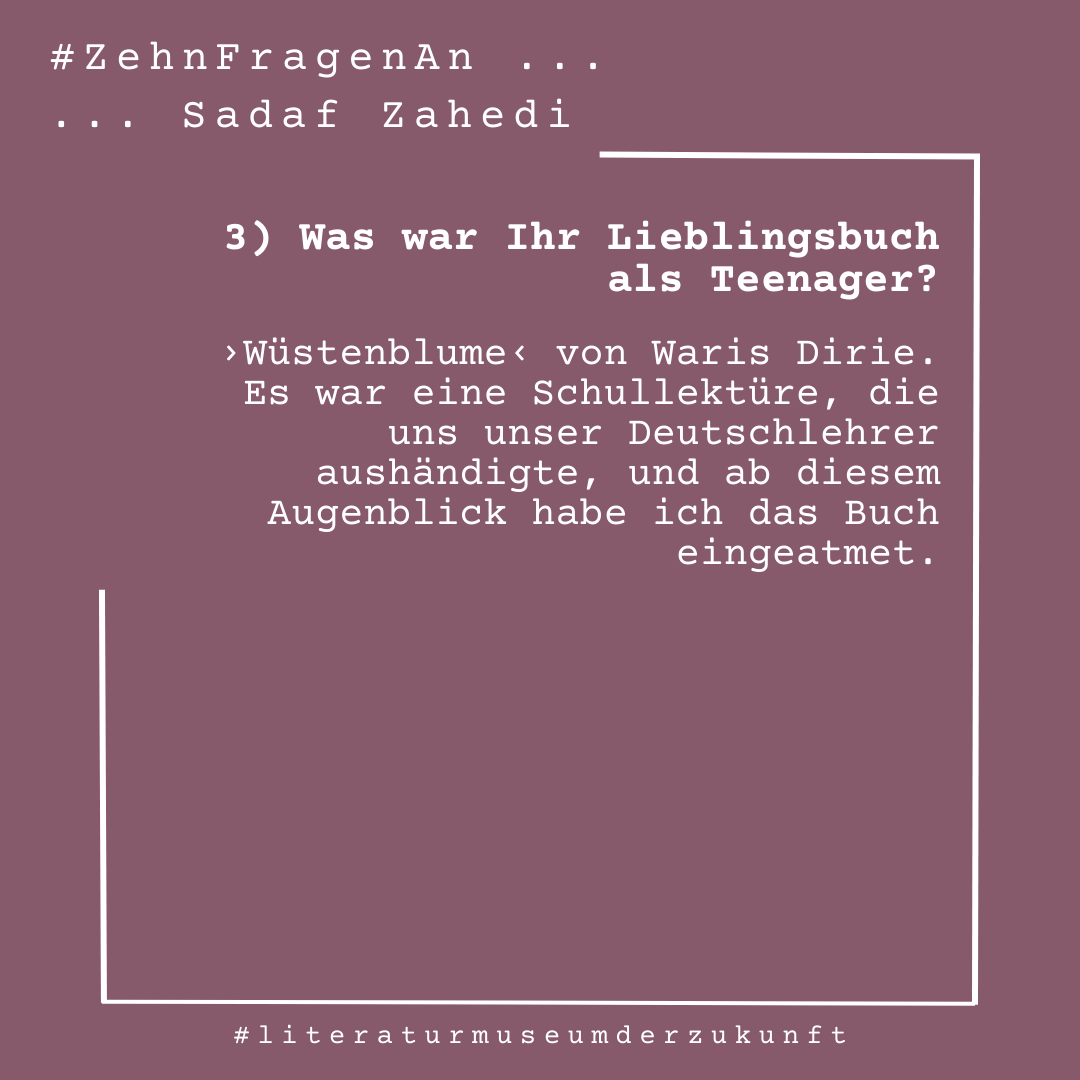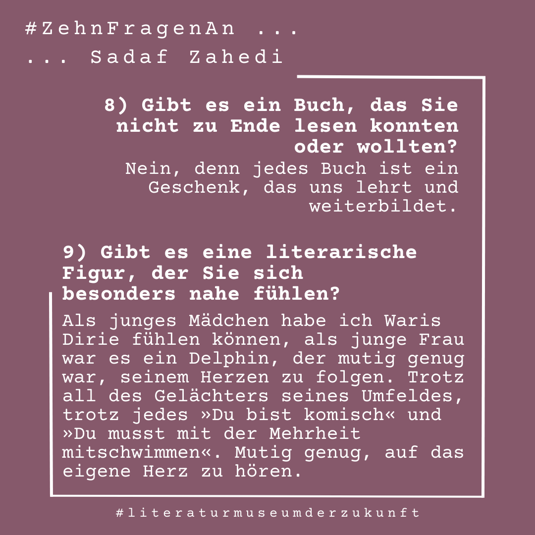 Sie ist Autorin, Vortragskünstlerin, Aktivistin – und Kopf hinter dem Projekt „Bildung ohne Bücher“ (https://www.sadafzahedi.de/projekte). Als Kind durfte sie selbst nicht lesen. Umso lauter erhebt sie jetzt ihre Stimme, um für das Recht auf Bildung einzutreten. Welche Bücher haben Sie, trotz oder wegen aller Schwierig-keiten, als Kind und Teenager begleitet, Frau Zahedi? [SadafZahedi]