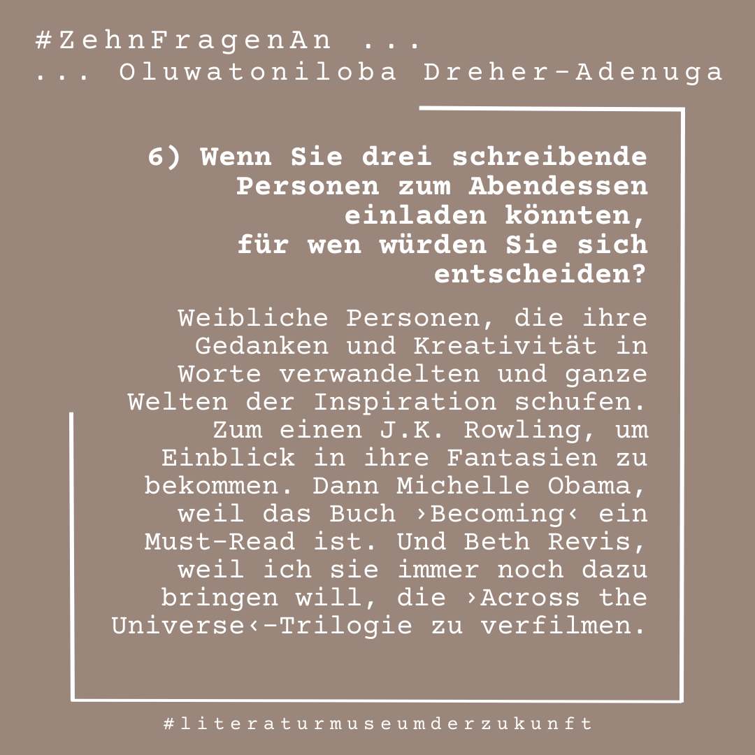 #38 … #zehnfragenan … Oluwatoniloba Dreher-Adenuga