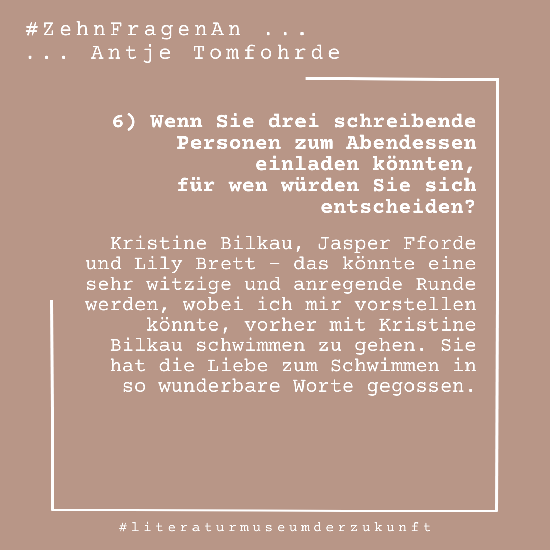 Frau Tomfohrde? Und welche Person aus der Bookstagram-Community nominieren Sie für die nächsten #zehnfragenan? [AntjeTomfohrde]