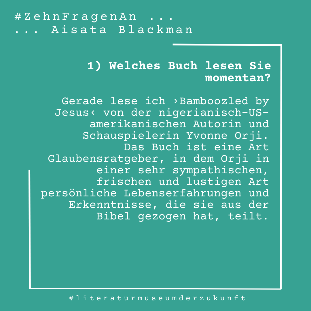 Germany’s Next Topmodel 2018, frühere Poetry-Slammerin, Stuttgarterin, Prinzessin (ihre Großeltern sind ein regionales Königspaar in Nigeria) – und Kennerin des Buchs der Bücher. Welches Buch haben Sie als Teenager auf Deutsch und Englisch gelesen, Frau Dreher-Adenuga? [OluwatonilobaDreherAdenuga]
