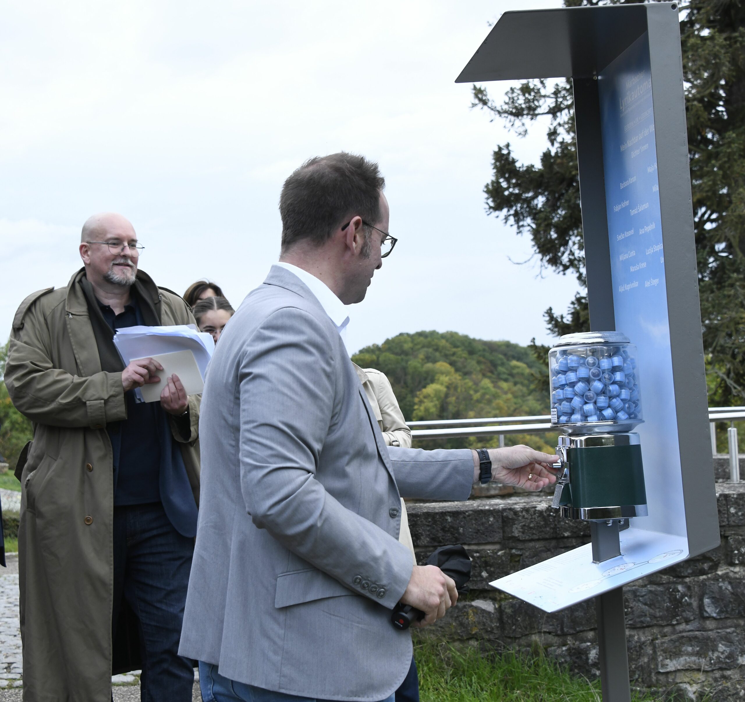 Für das erste gemeinsame Projekt, die „Marbacher Lyrikautomaten“, haben die Teilnehmerinnen des Literaturkreises 15 Gedichte ausgewählt, die sie durch ihr Leben begleitet haben, an die sie sich gern erinnern und die sie zum Teil sogar noch auswendig wissen. Die Gedichte sind im Lyrikautomaten am Marbacher Bahnhof käuflich zu erwerben.