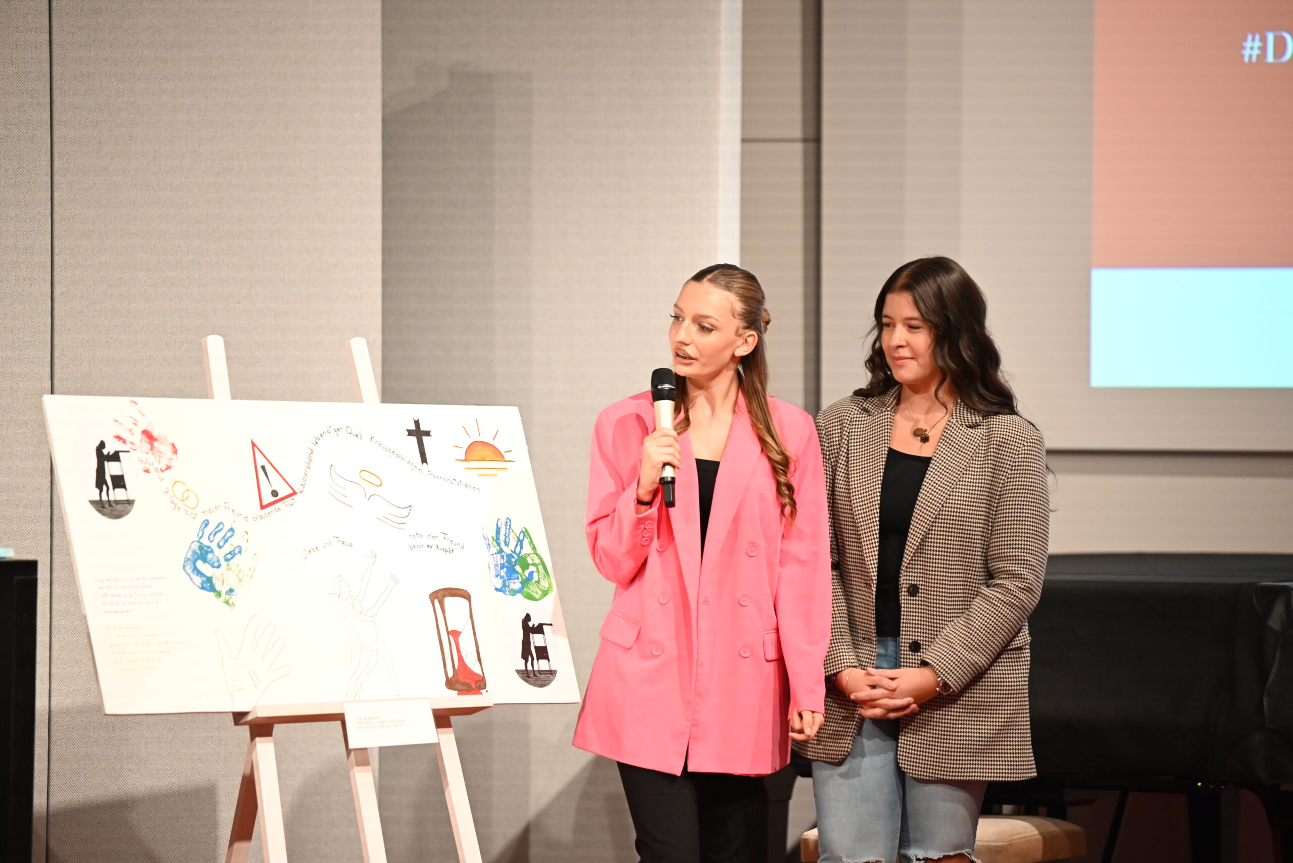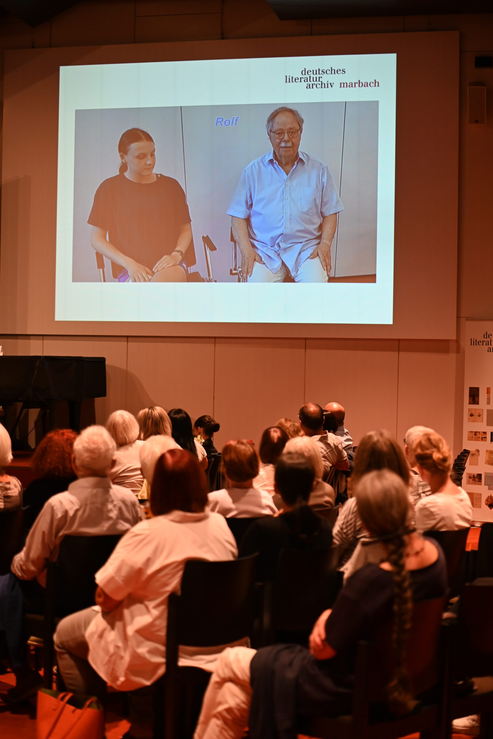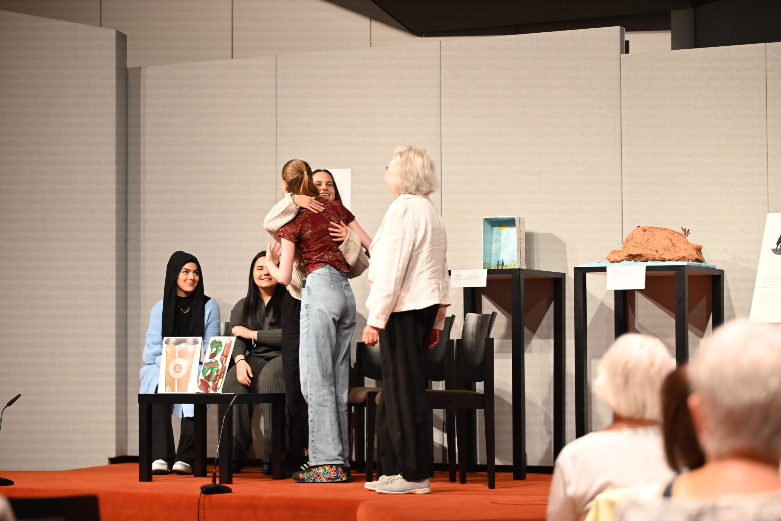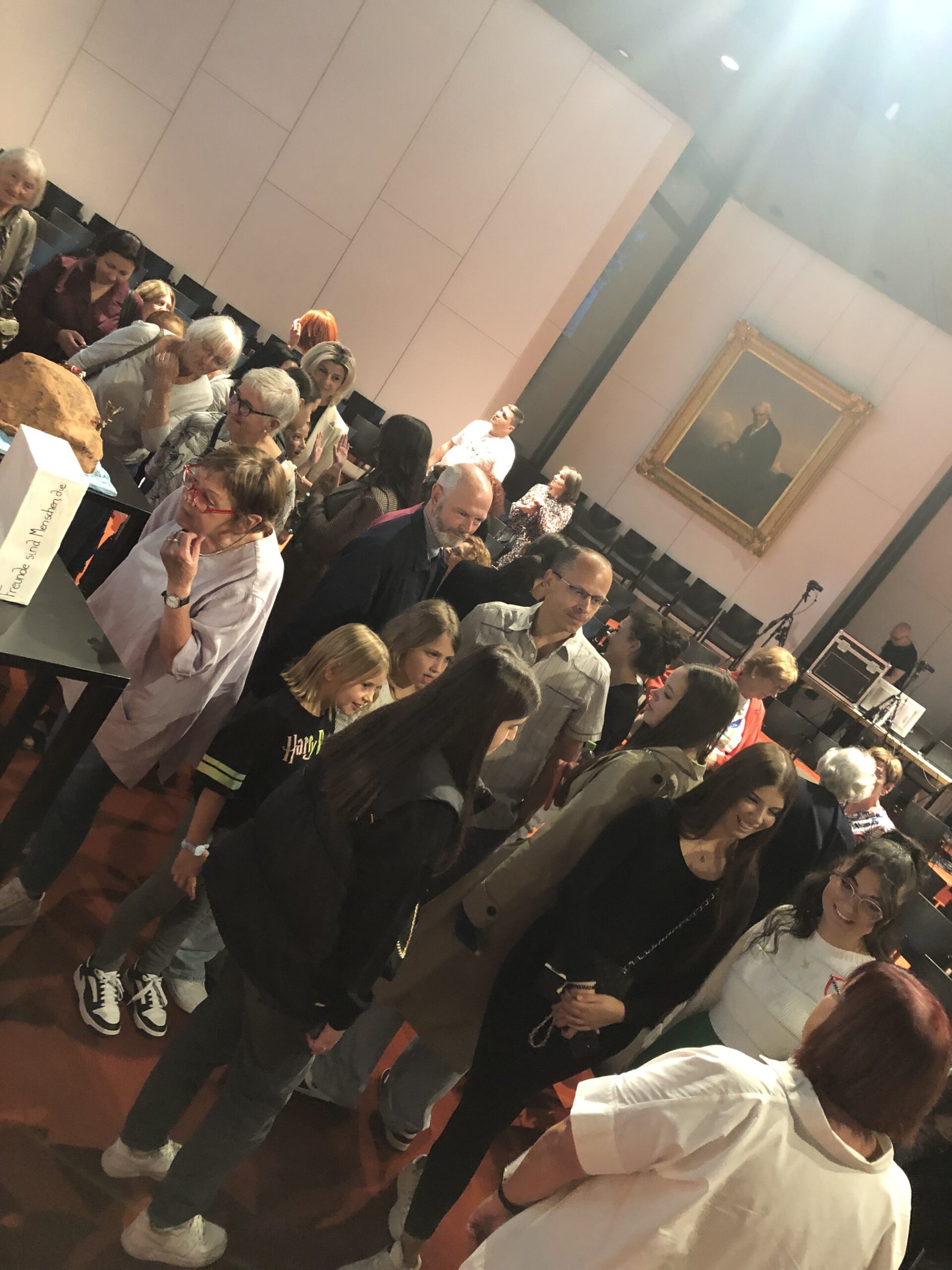 Der Gesprächskreis Philosophie des Seniorenbüros Ludwigsburg und die Schülerinnen der 9. Klasse der Anne-Frank-Realschule Marbach haben seit Mai ganze Arbeit geleistet. Und am 13. Oktober war es soweit, die Gruppen haben die kreativen Ergebnisse ihrer Zusammenarbeit im Humboldt-Saal des DLA Marbach vor zahlreichem Publikum präsentiert: Im selbstverfassten und -gespielten Mini-Drama „Perspektivwechsel“ kommt es erst zum Streit, dann zur Versöhnung zwischen Freudinnen. Video-Interviews zwischen den Generationen zeigen, durch welche Höhen und Tiefen eine Freundschaft manchmal geht und warum. Und die Kunstgruppe hat Motive und Themen aus Schillers ‚Bürgschaft‘ in bildende Kunst übersetzt.
