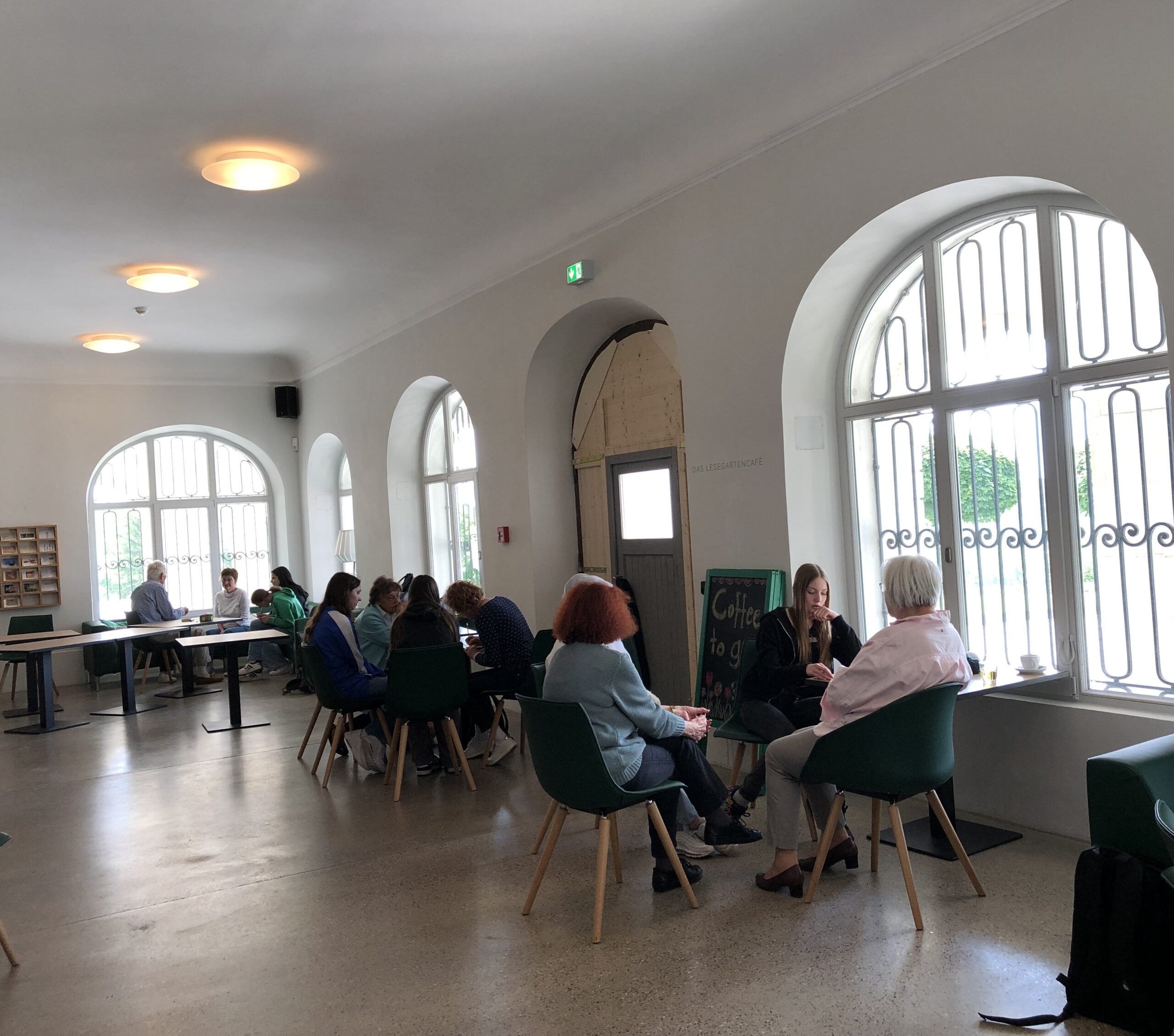 Eine Gruppe, die nicht mehr so einfach ins Museum gehen kann, ist die der Senior:innen. Gleich neben dem Museum, nur wenige Meter entfernt, liegt das Marbacher Seniorenstift Schillerhöhe. Jeden Dienstag trifft sich dort ein Literaturkreis, der gemeinsam liest oder singt, Texte bespricht und genießt. Die Teilnehmerinnen stammen fast alle aus Marbach, sie kennen das Museum seit Jahrzehnten und haben viele Erinnerungen an die Schillerhöhe. Für die Teilnehmerinnen sind vor allem der Weg ins Museum und auch die Temperaturen von nur 18°C in den Ausstellungsräumen ein Hindernis, das Museum zu besuchen. Daher kommt das Literaturmuseum der Zukunft einfach zu ihnen ins Seniorenstift!